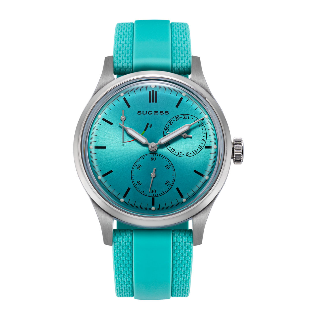 Sugess S458 Light Blue Dial Stainless-Steel Automatic Rubber Band