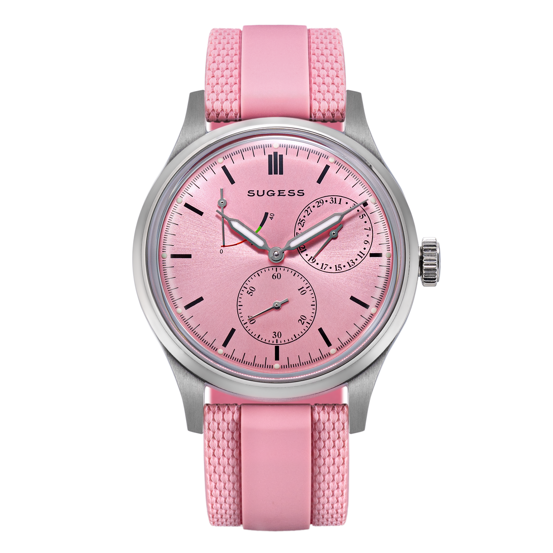Sugess S458 Pink Dial Stainless-Steel Automatic Rubber Band