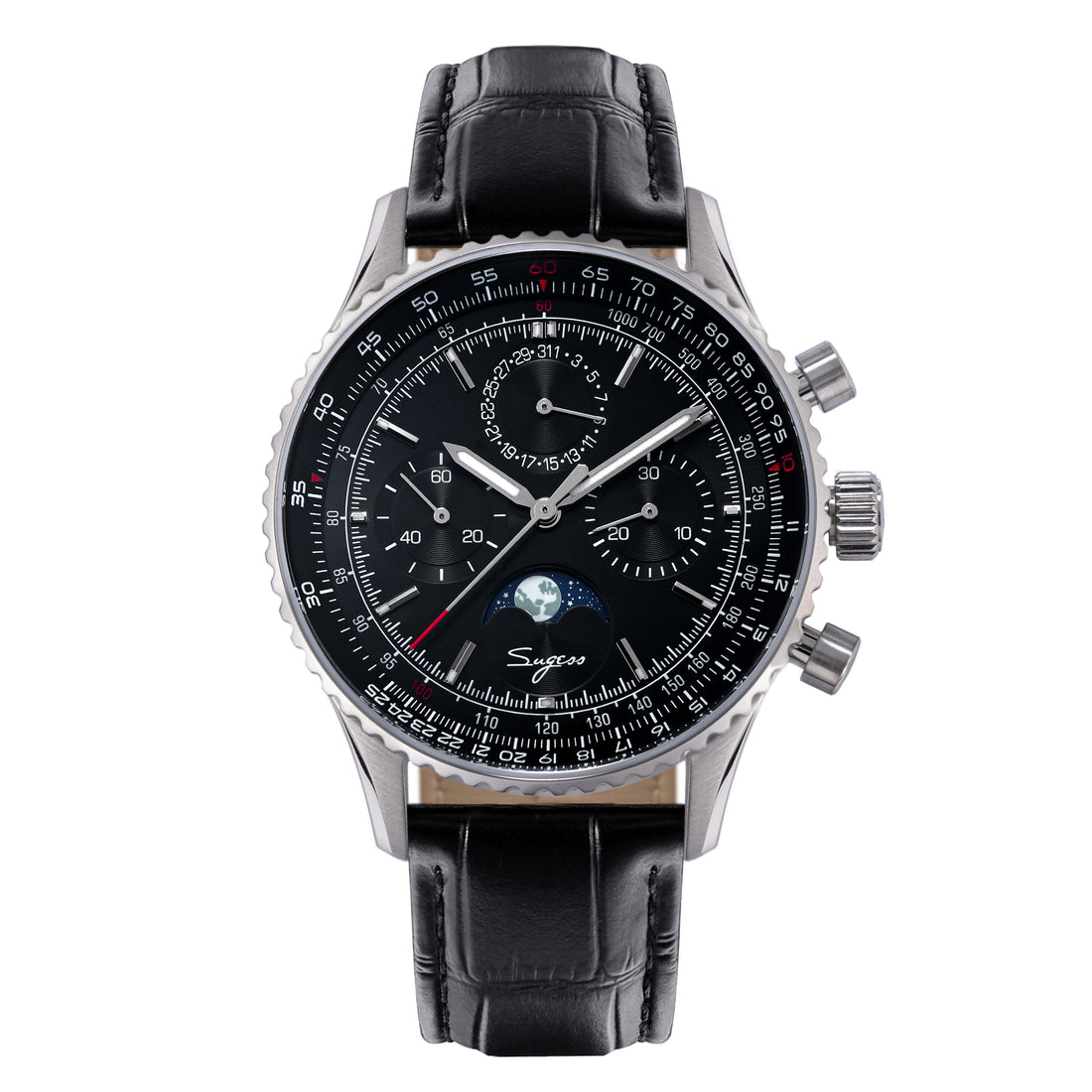 Sugess S465 Chronograph Stainless Steel Black Dial Silver Hand