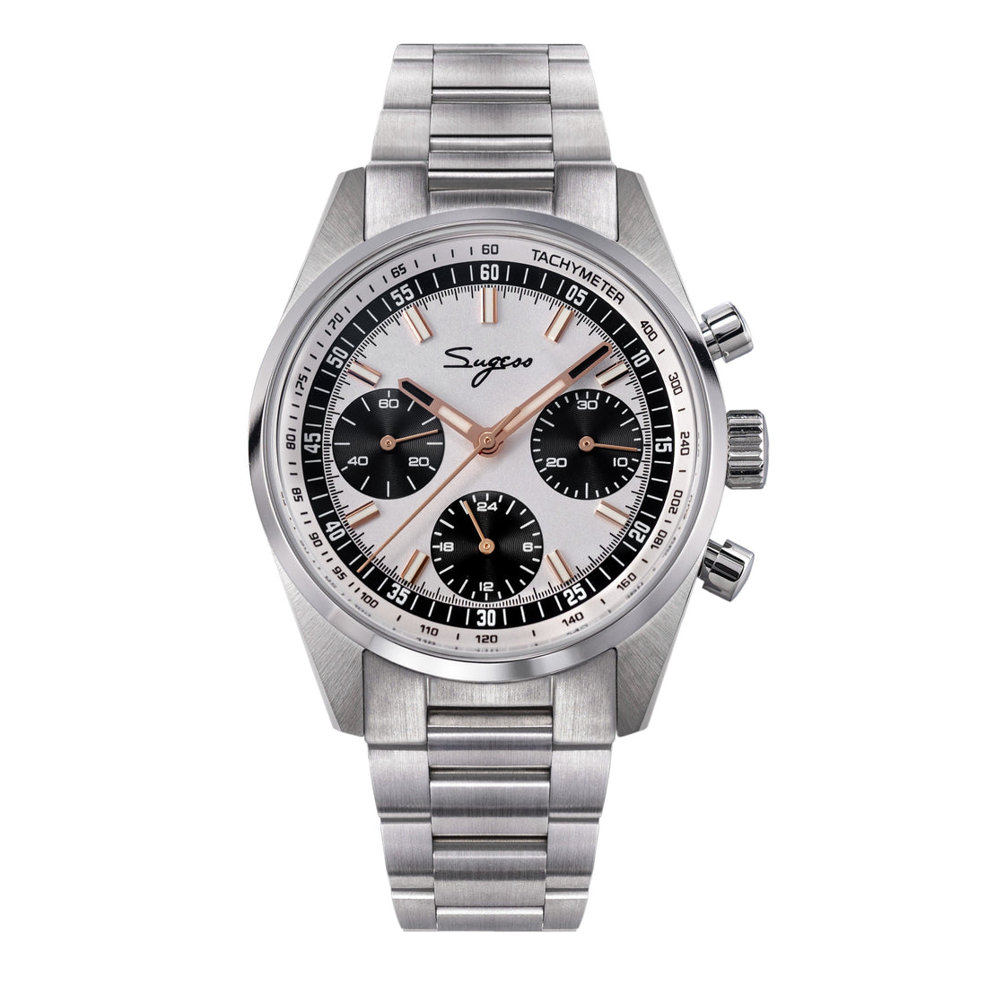 Sugess S465 Chronograph Stainless Steel Panda Dial Silver Hand