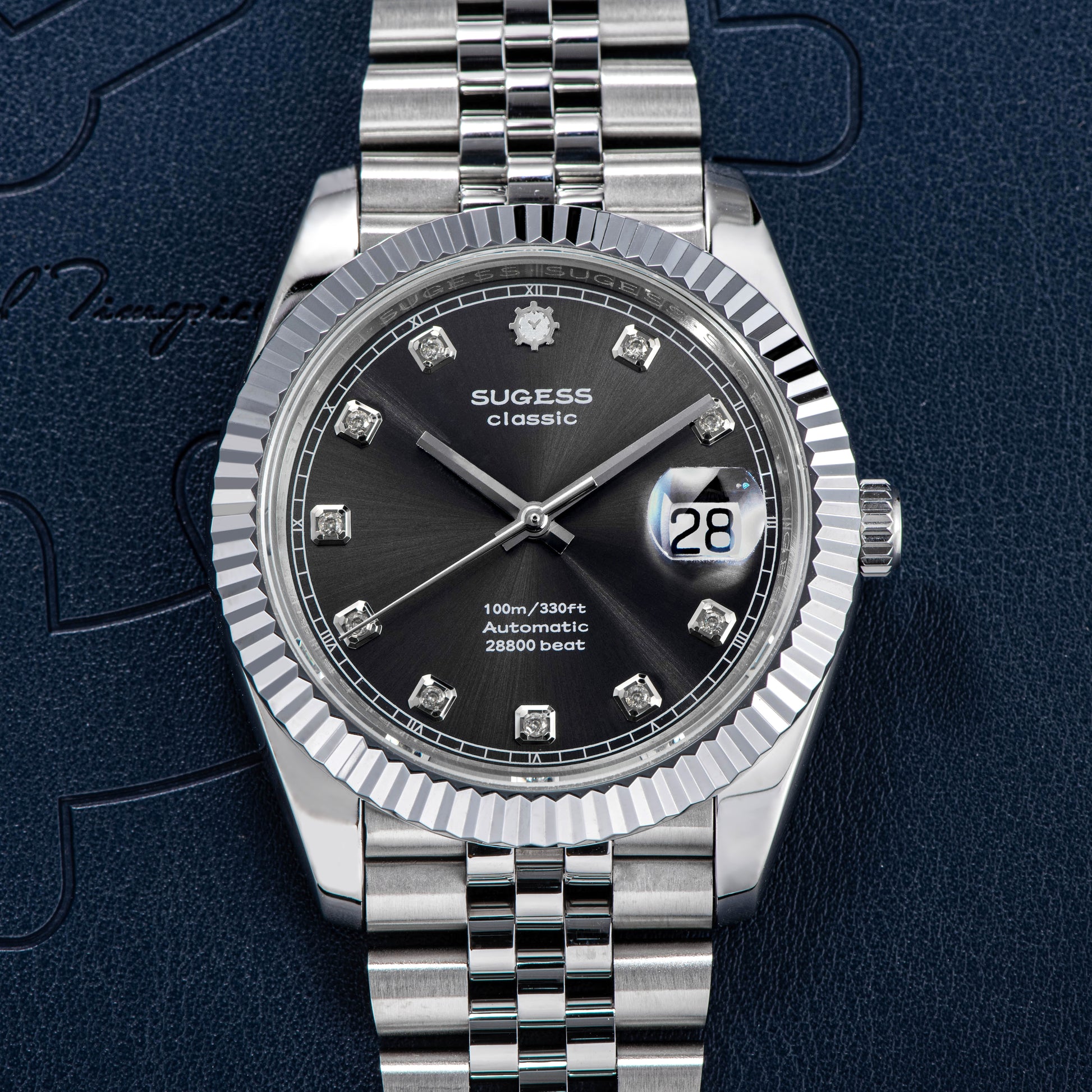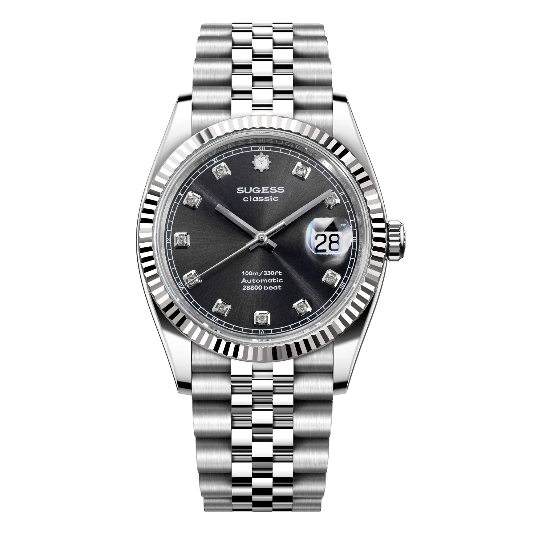Automatic Classic S448 Grey Dial Crystal Indices Fluted Bezel Jubilee Bracelet ST2130