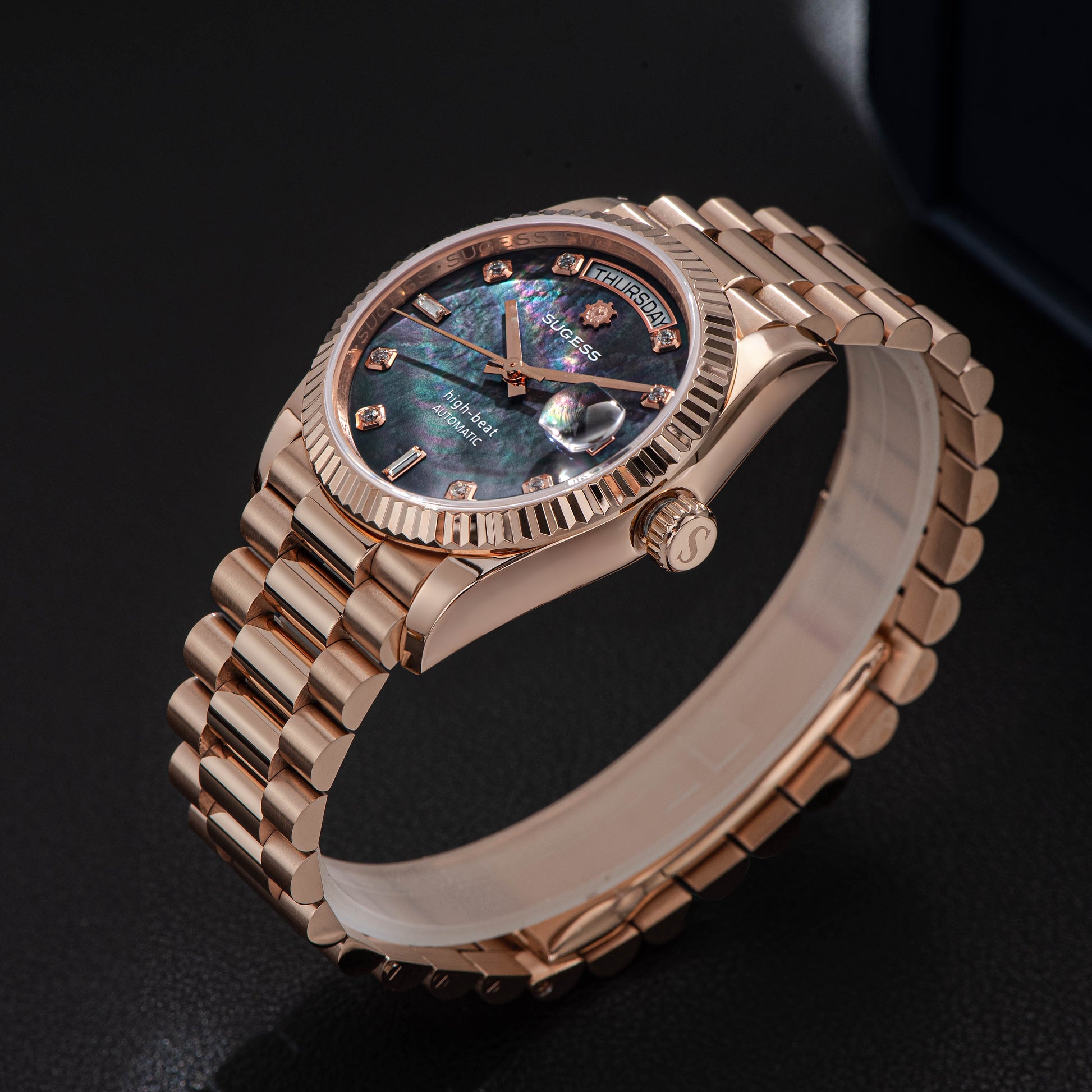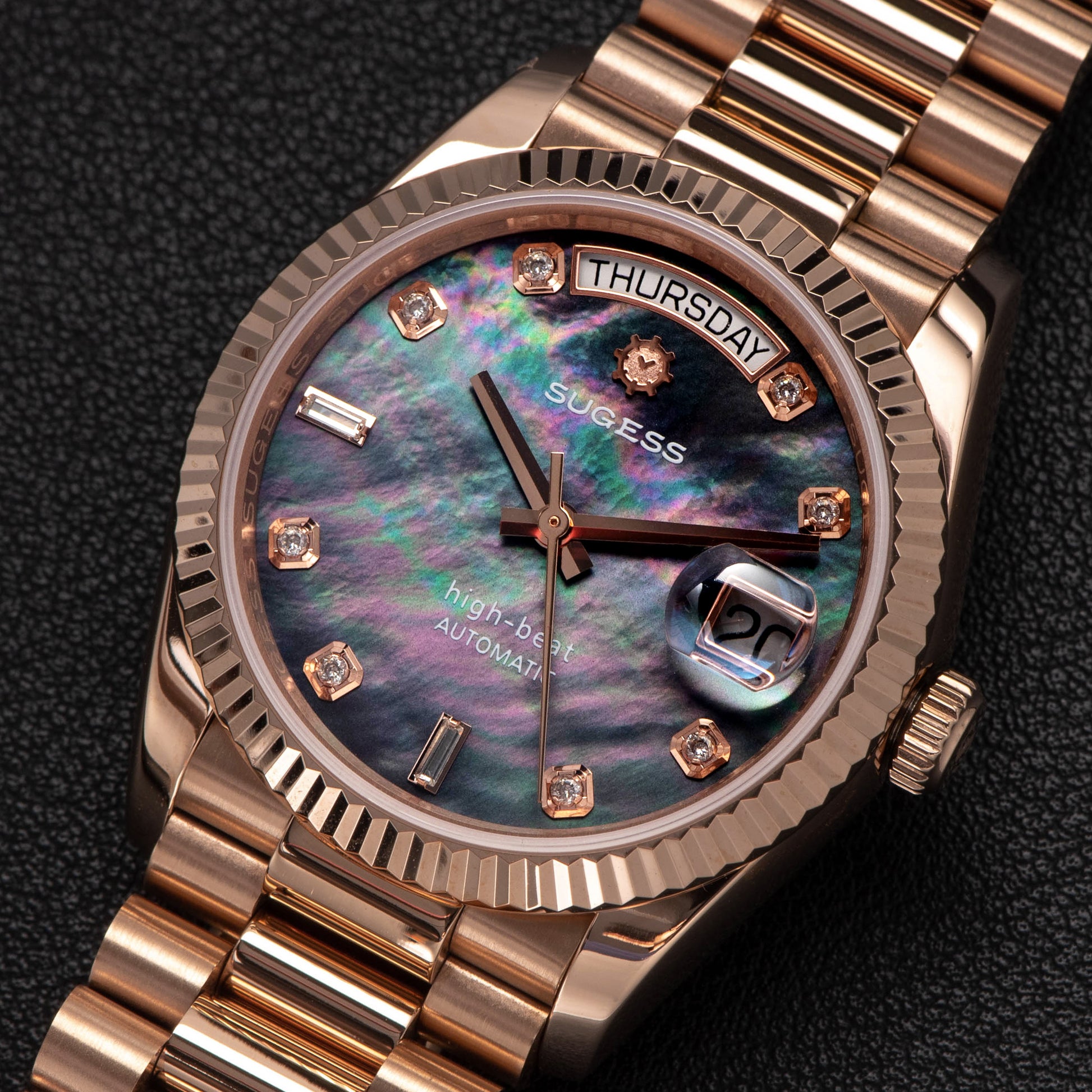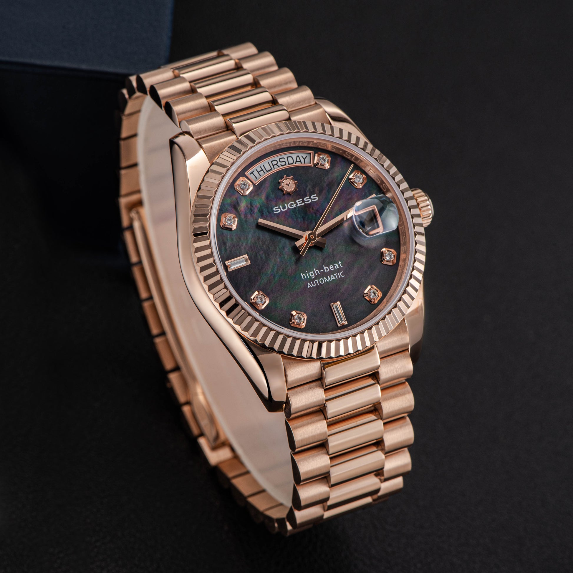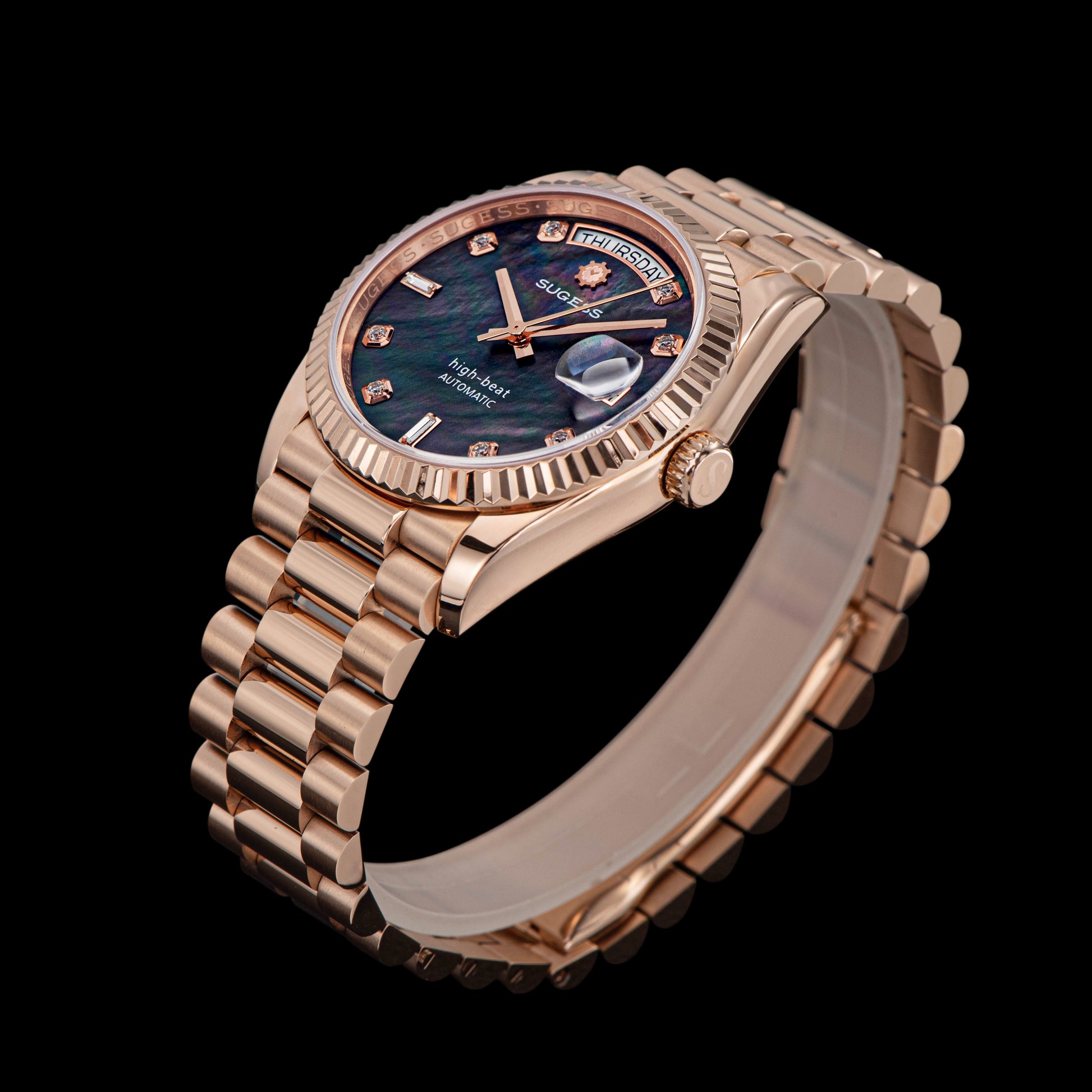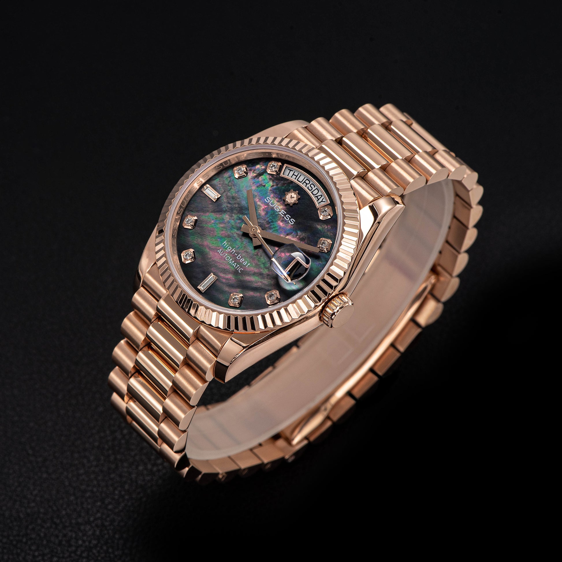 Heritage S449 DD Date and Day Display DD36 36mm Rose Gold Black Pearl Dial Automatic