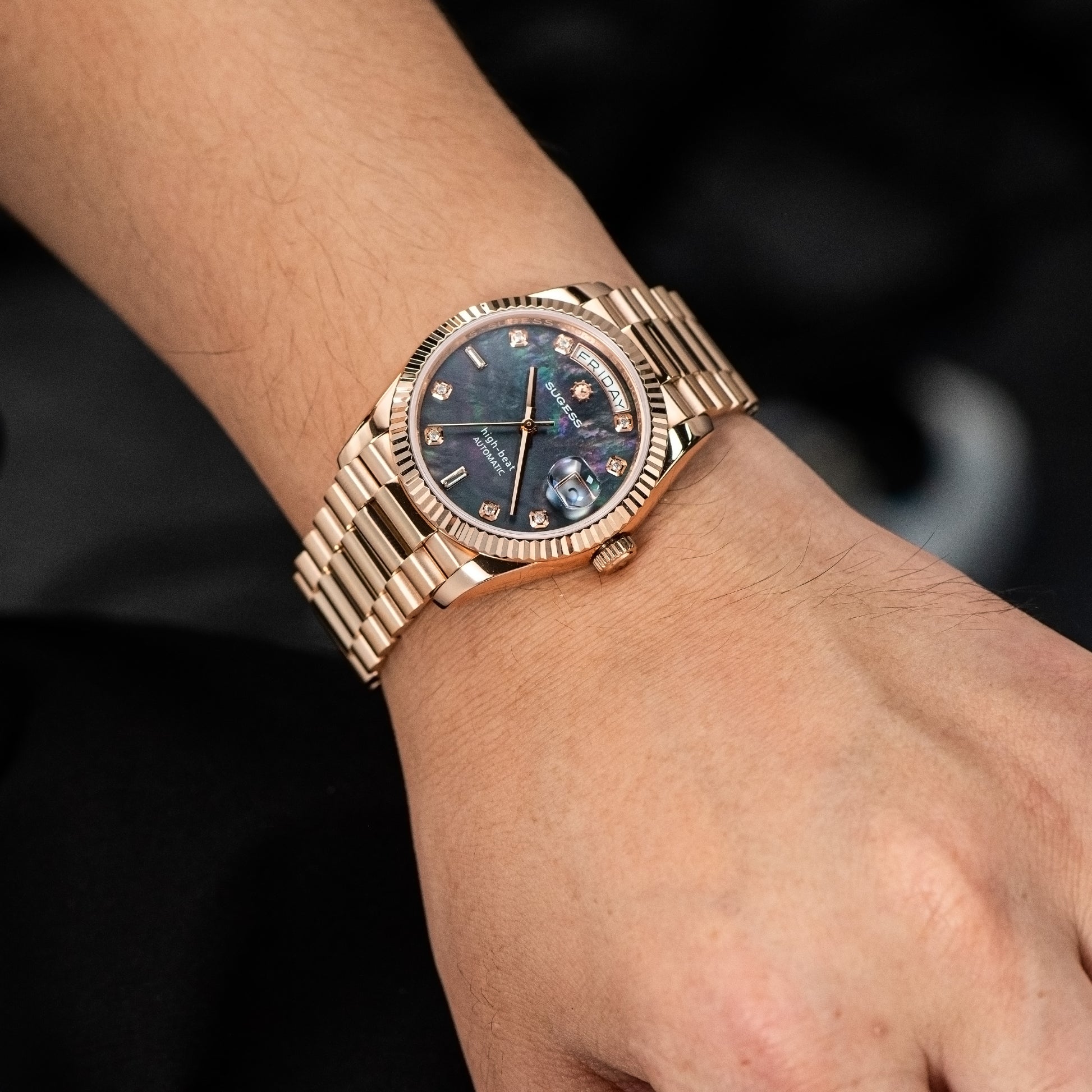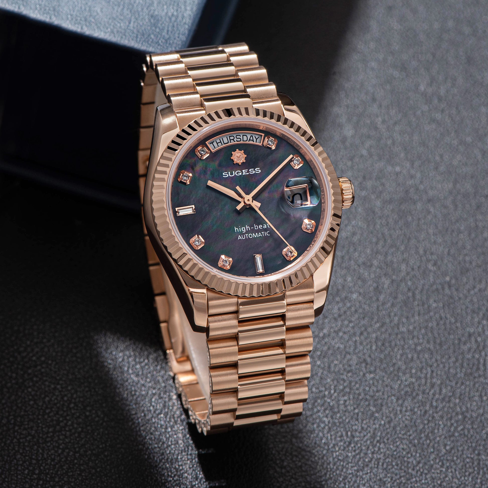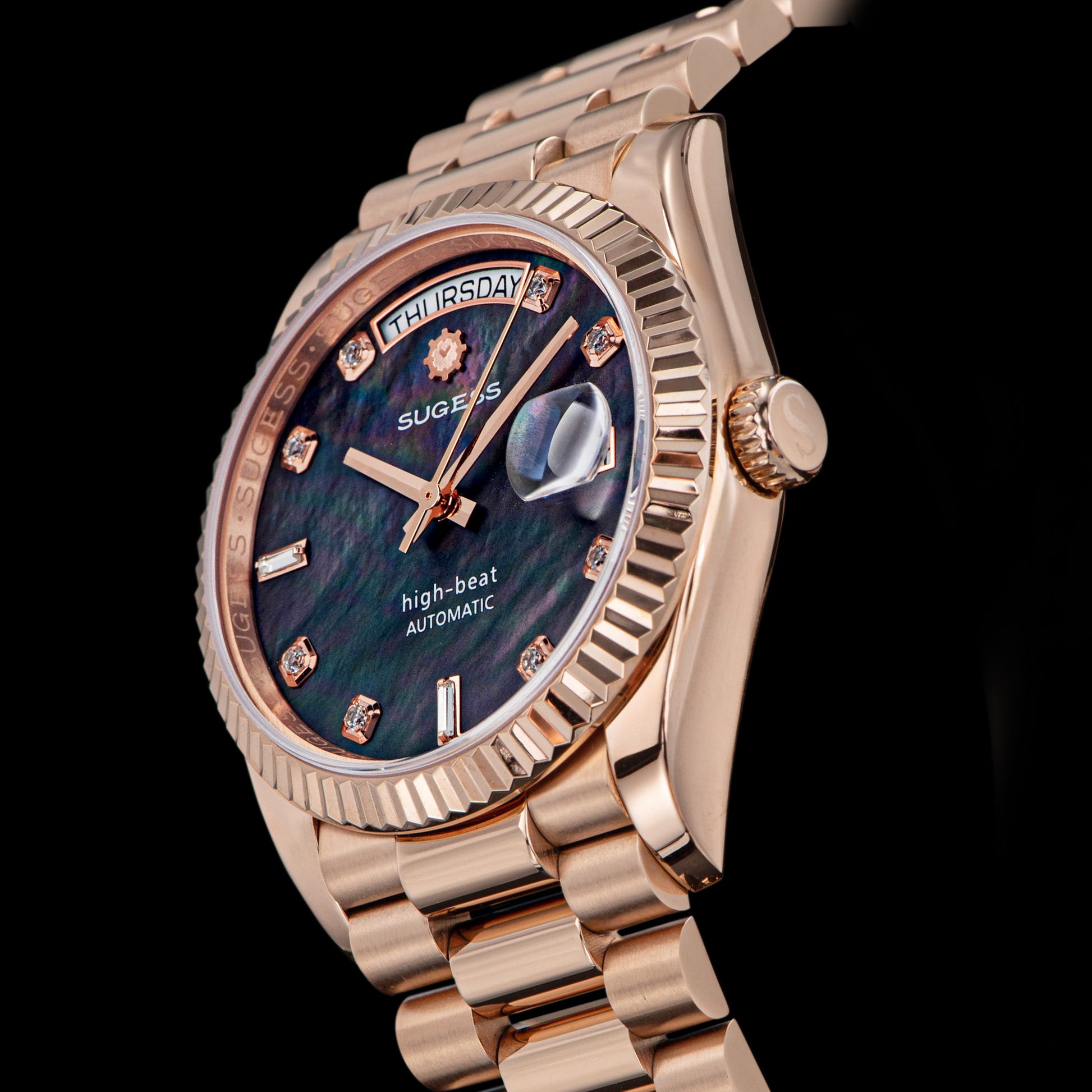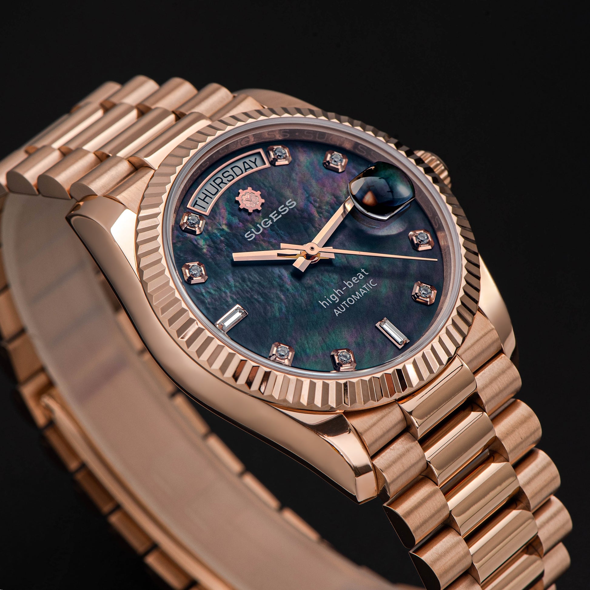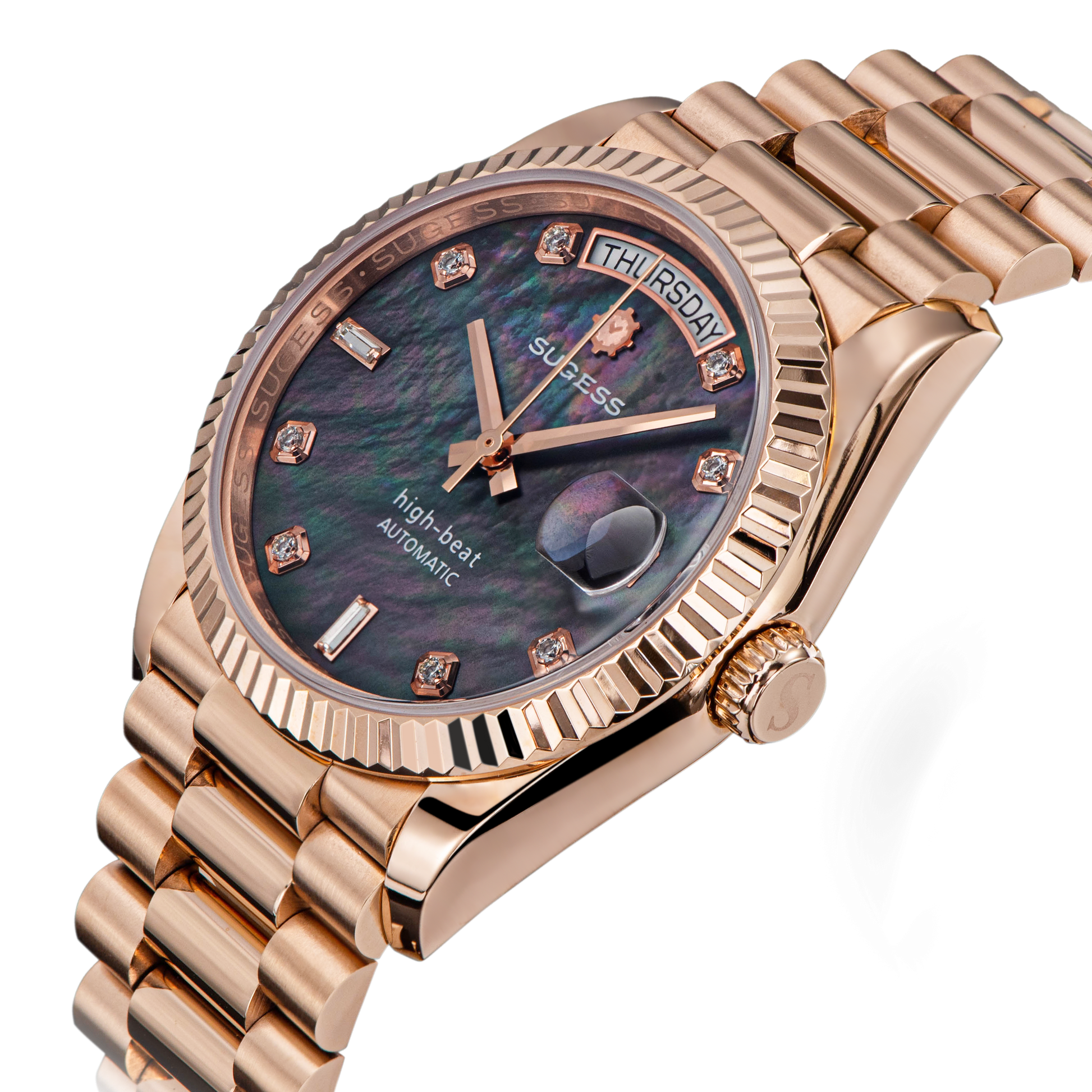 Heritage S449 DD Date and Day Display DD36 36mm Rose Gold Black Pearl Dial Automatic
