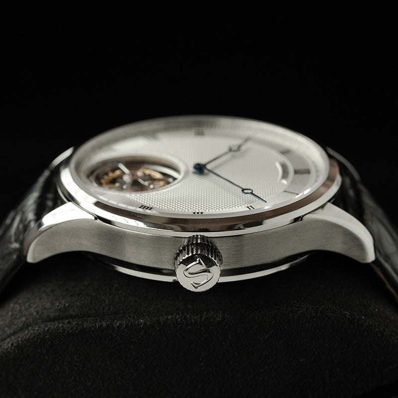 Features: Tourbillon, Paris nail Microhyla Dial, Blue Steel Hands and Screws, Weight Precision Balance Wheel, Exhibition Case Back Cover