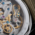 - Features : Column Wheel Chronograph, Blue steel screws and Exhibition Case Back Cover, Swan Neck Regulator