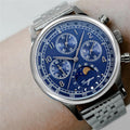 • Features : Column Wheel Chronograph, 59 teeth gear for 29 ½ Days MoonPhase, Exhibition Case Back Cover, Gold Swan Neck Regulator