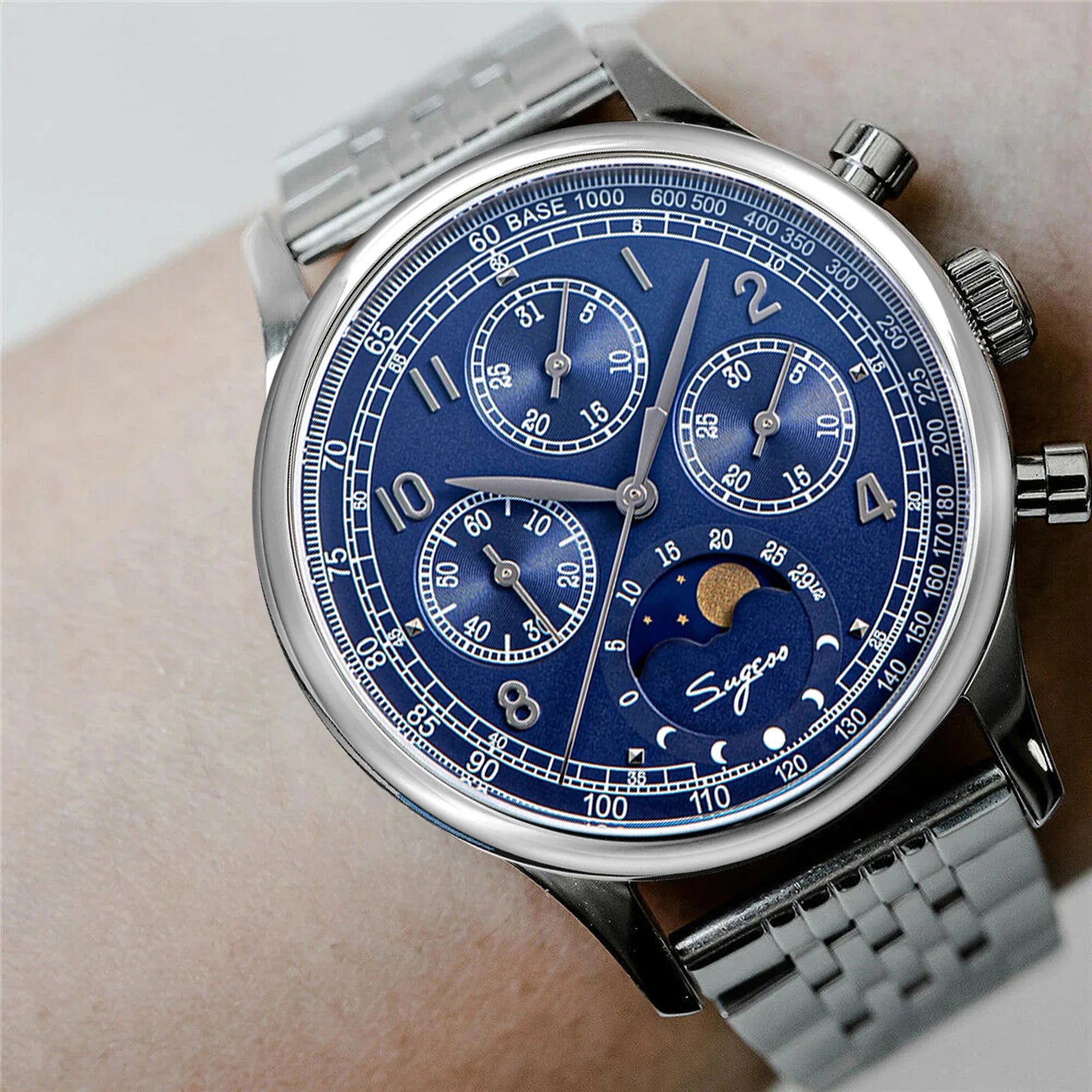 MoonPhase Master S389-2 Deep Blue Swan Neck Regulator Bracelet