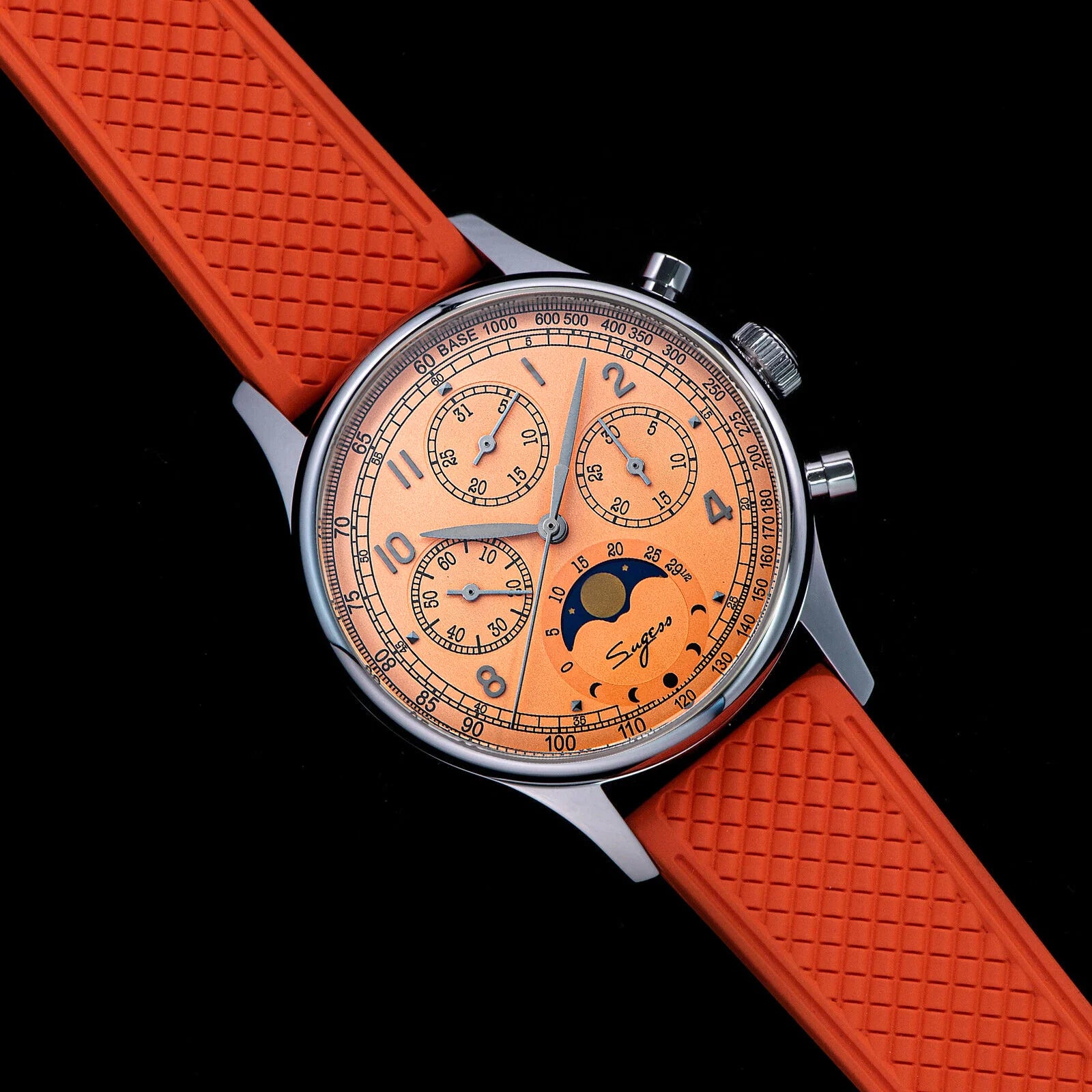 MoonPhase Master S389-2 Salmon Dial Swan Neck Regulator Rubber Band