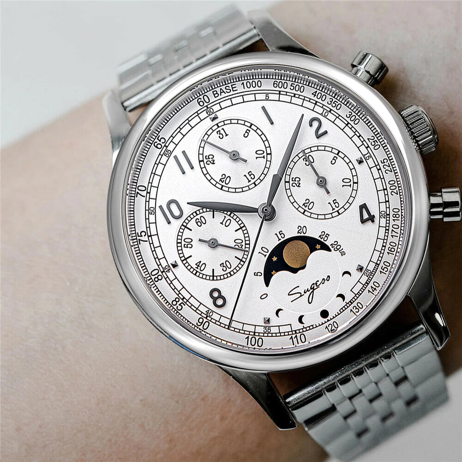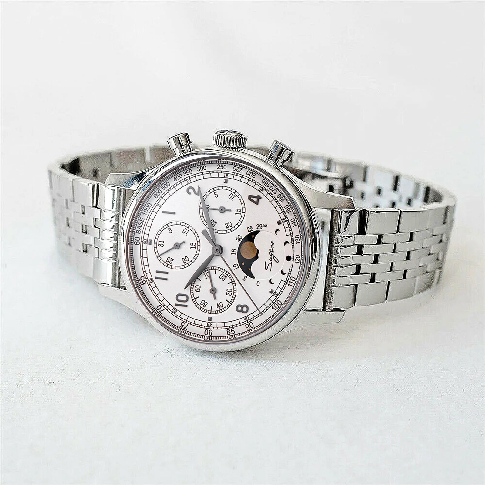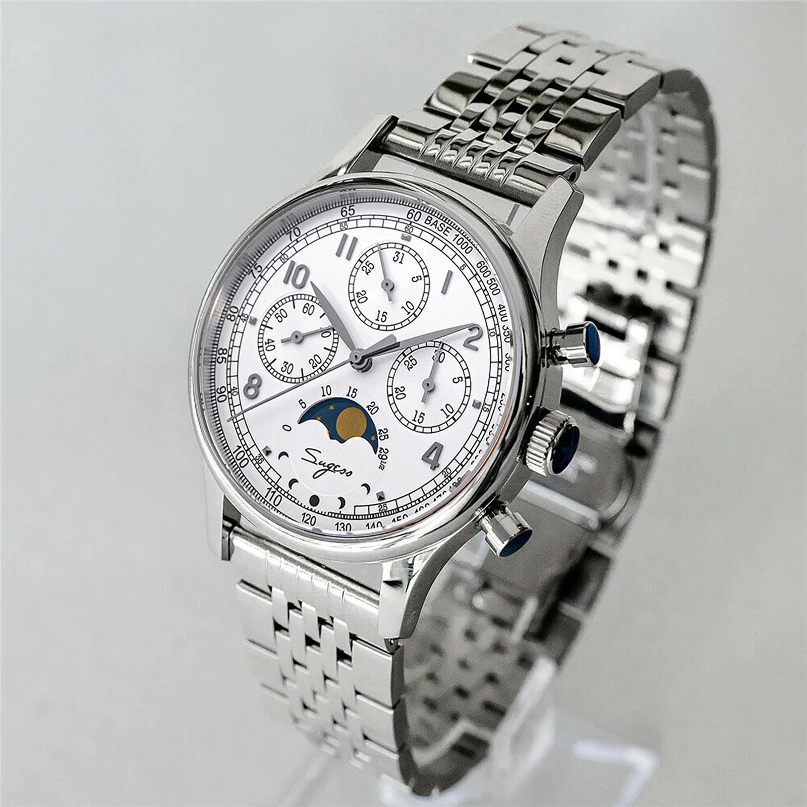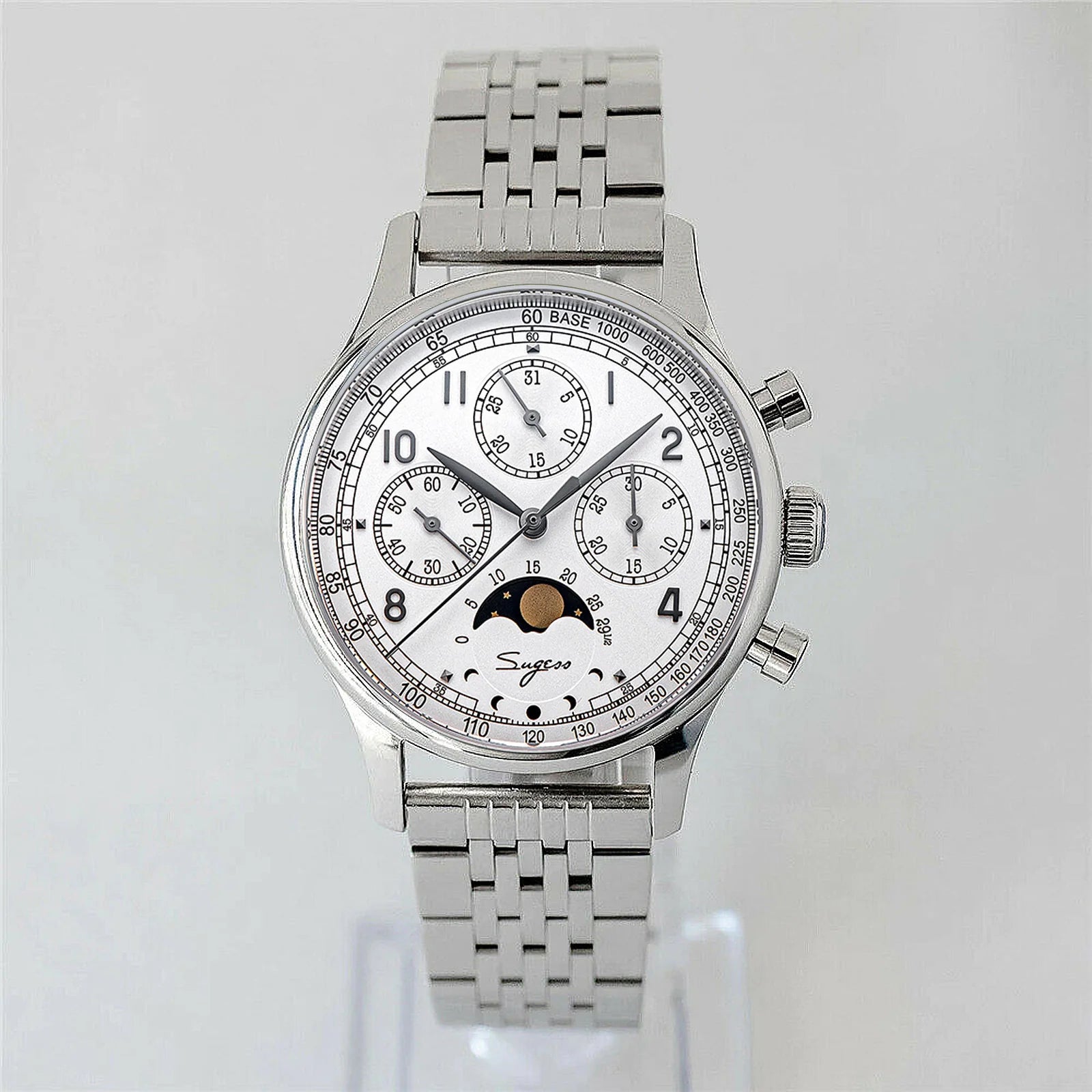 MoonPhase Master S389-2 White Dial Swan Neck Regulator Bracelet
