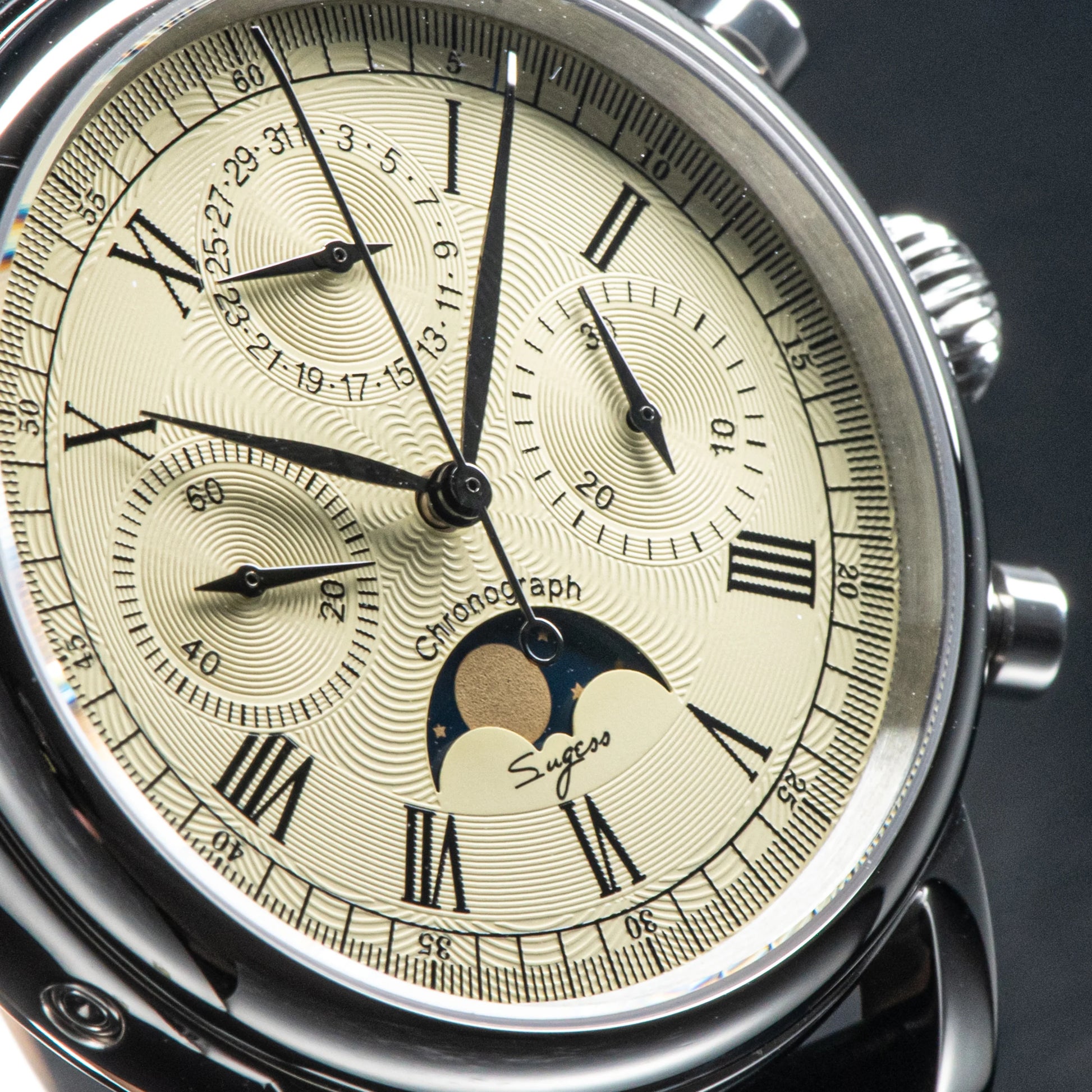 • Features : 12 Hours and seconds Indicator, Date Indicator, 29 ½ Days MoonPhase Display, 30 Minutes Chronograph
