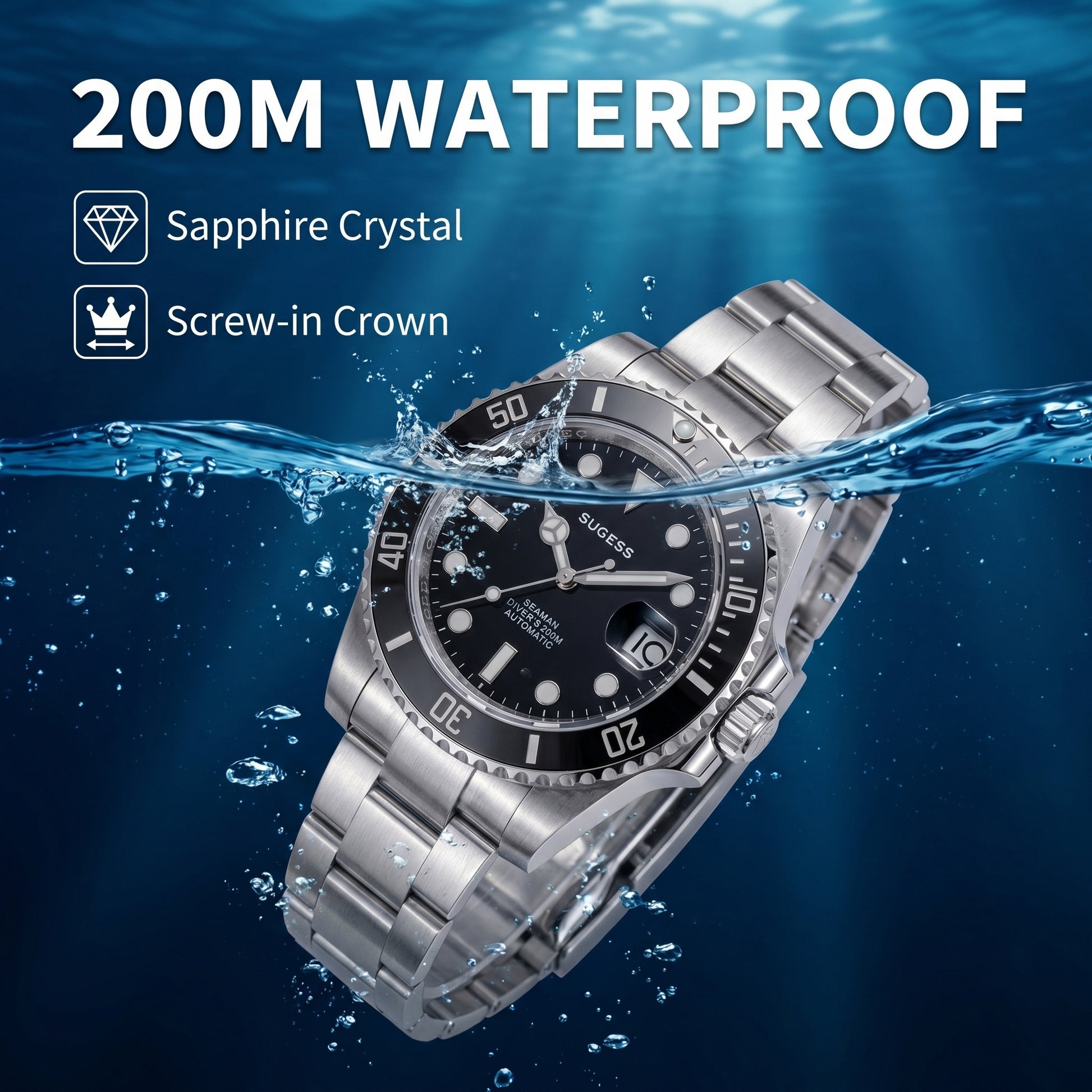 - Water Resistance : With a 20ATM water resistance rating (200 meters), this watch is suitable for everyday wear, swim and diving.