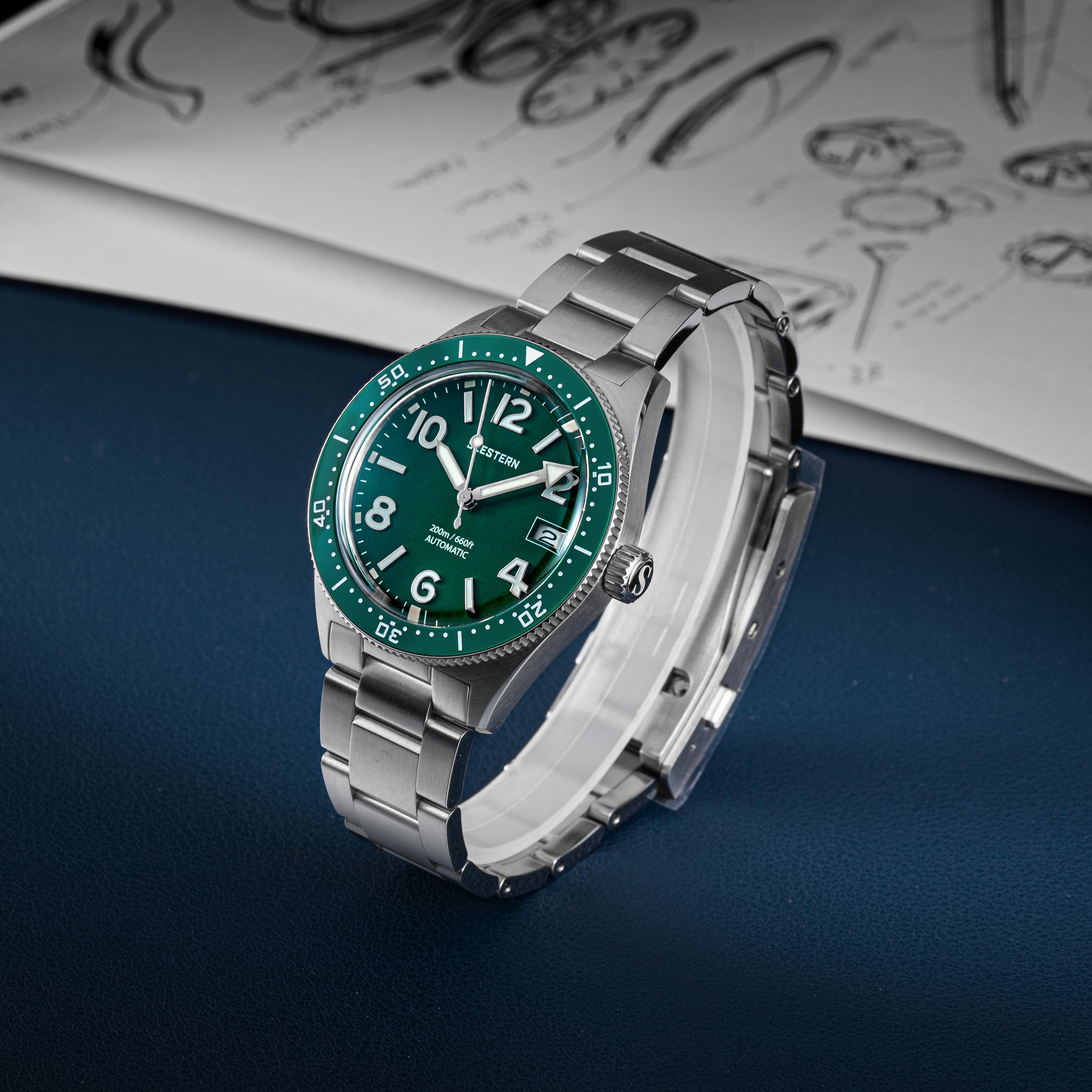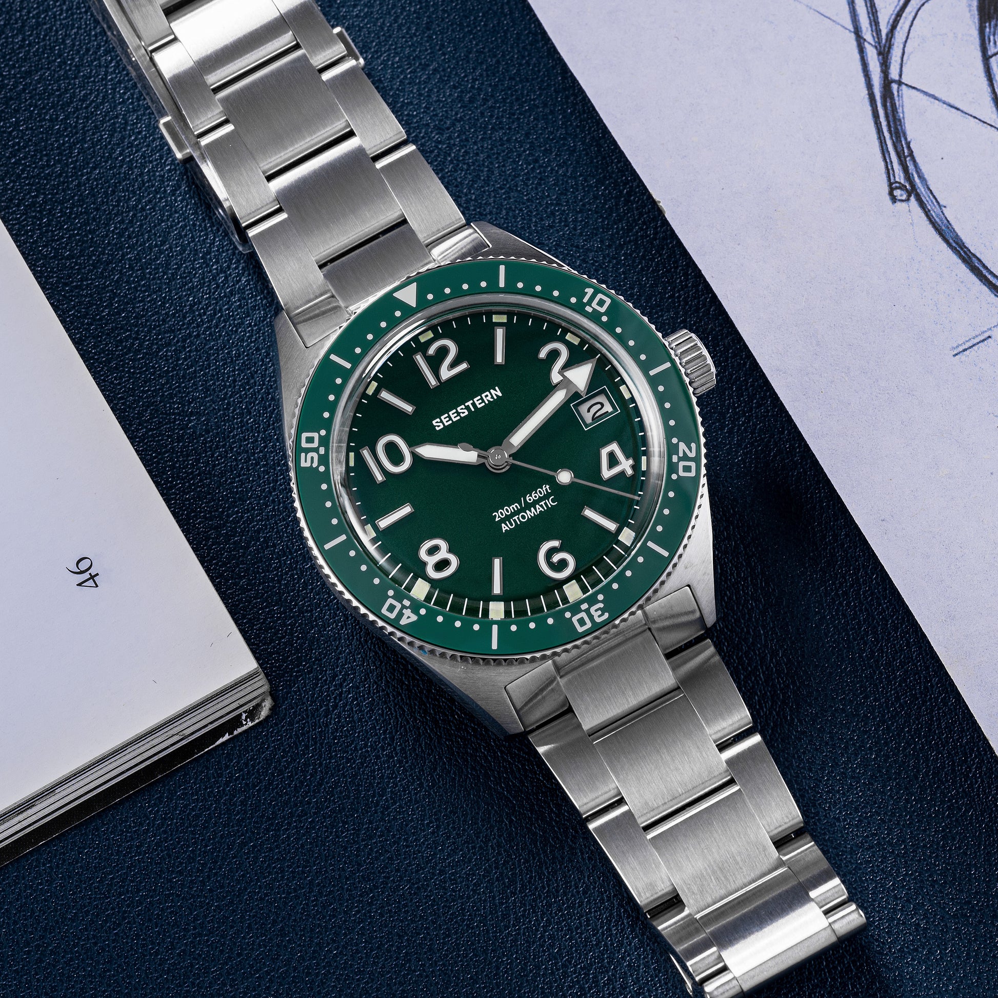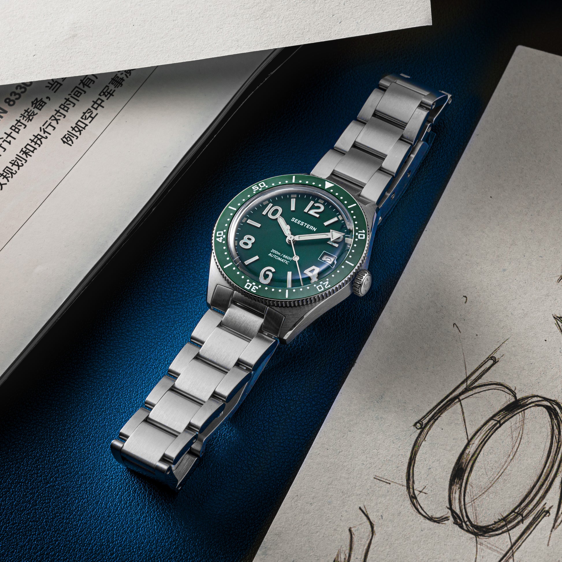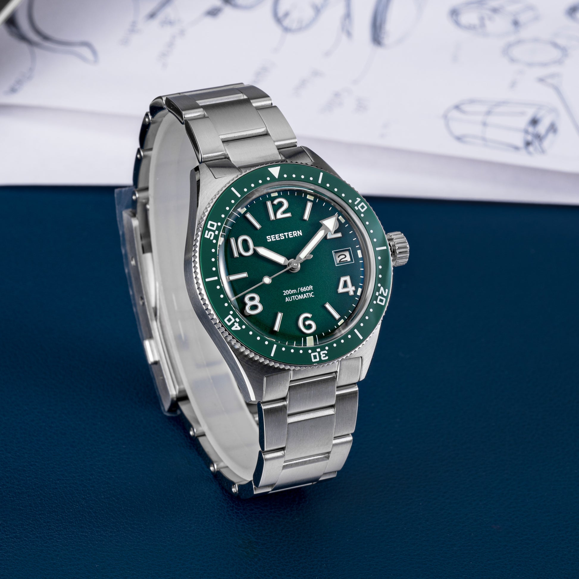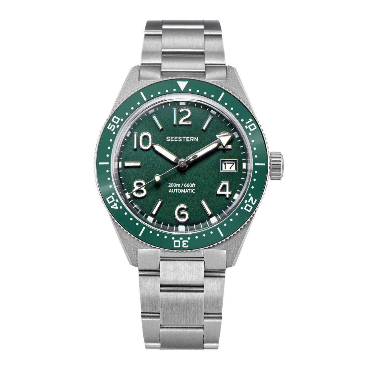 Seestern S434-2 Stainless-Steel Green Dial Professional Diver Automatic 200m Water Resistant