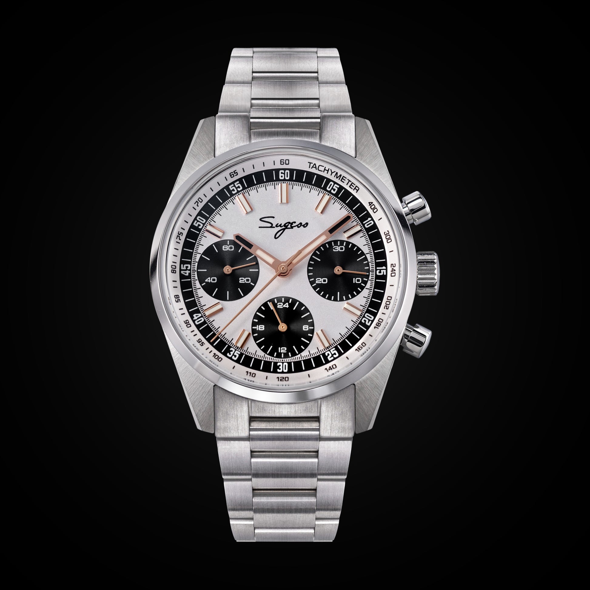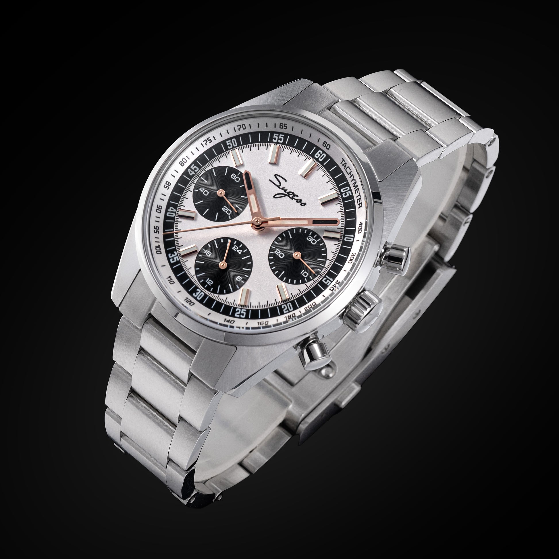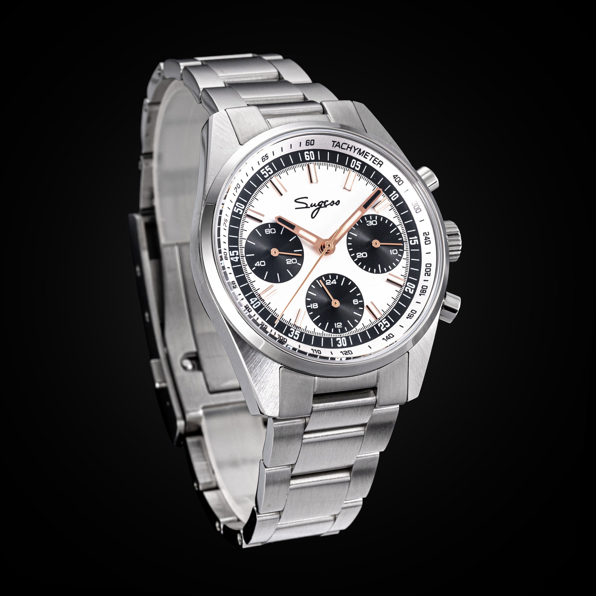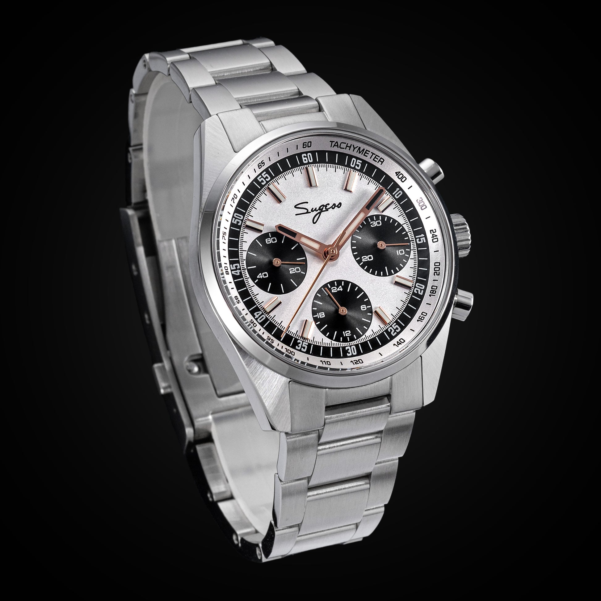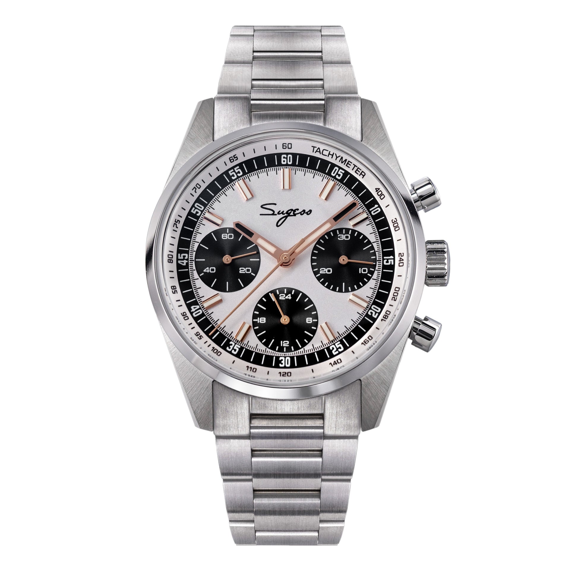 Sugess S465 Chronograph Stainless Steel Black Dial Rose Gold Hand