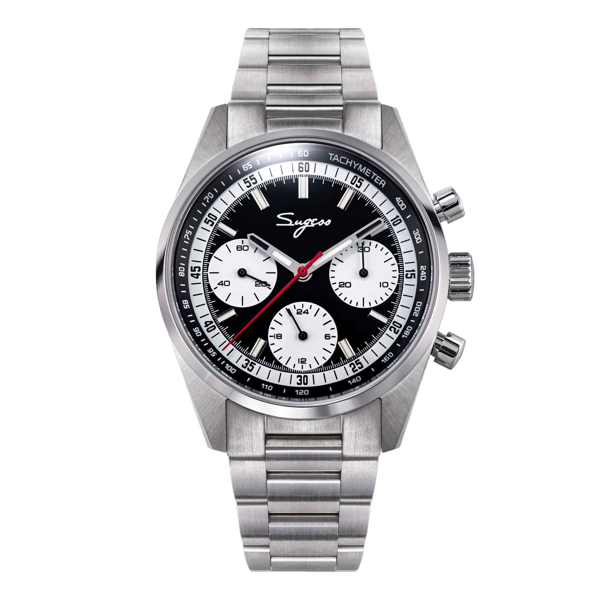 Sugess S465 Chronograph Stainless Steel Black Dial Silver Hand