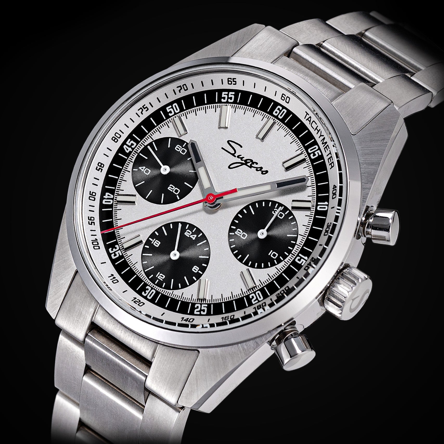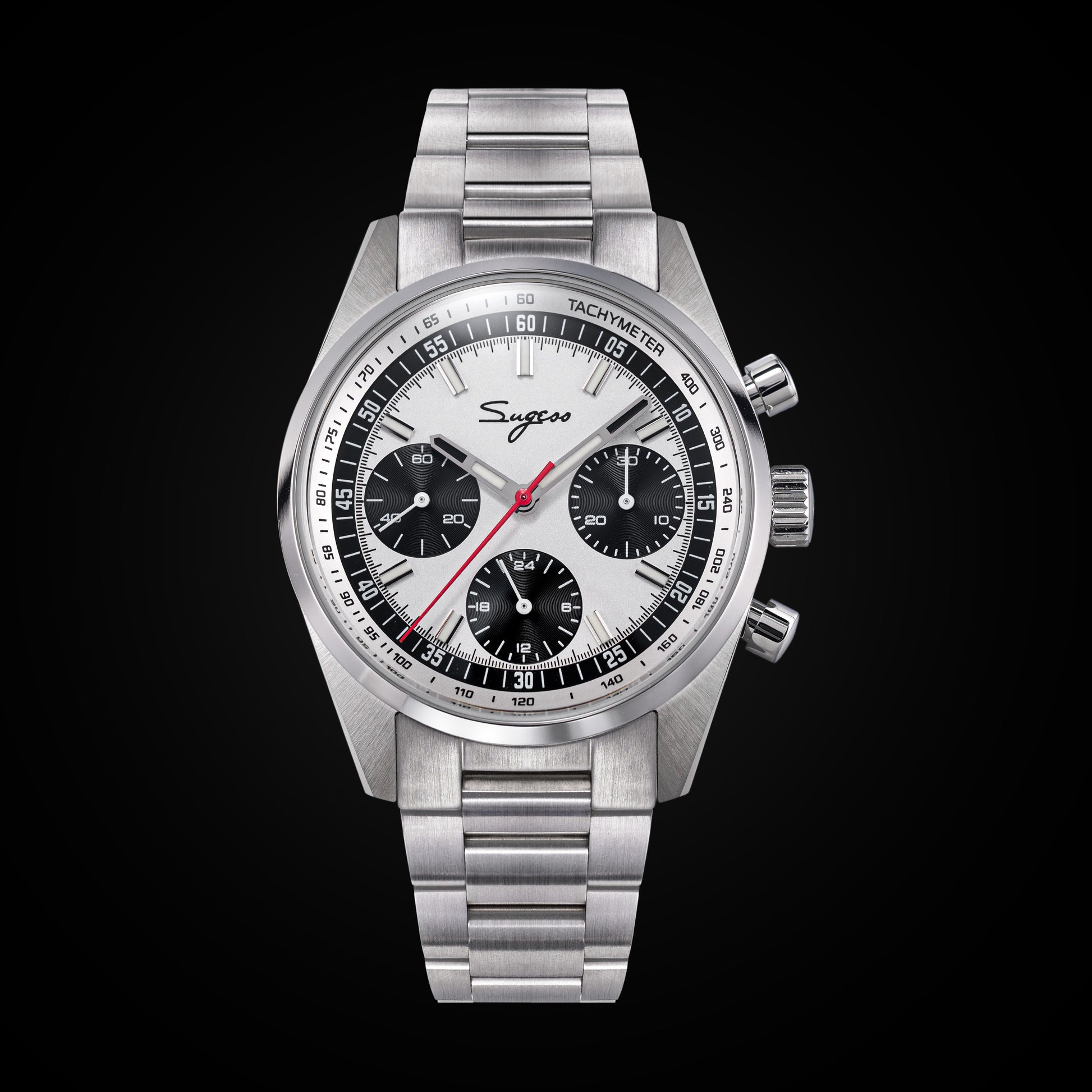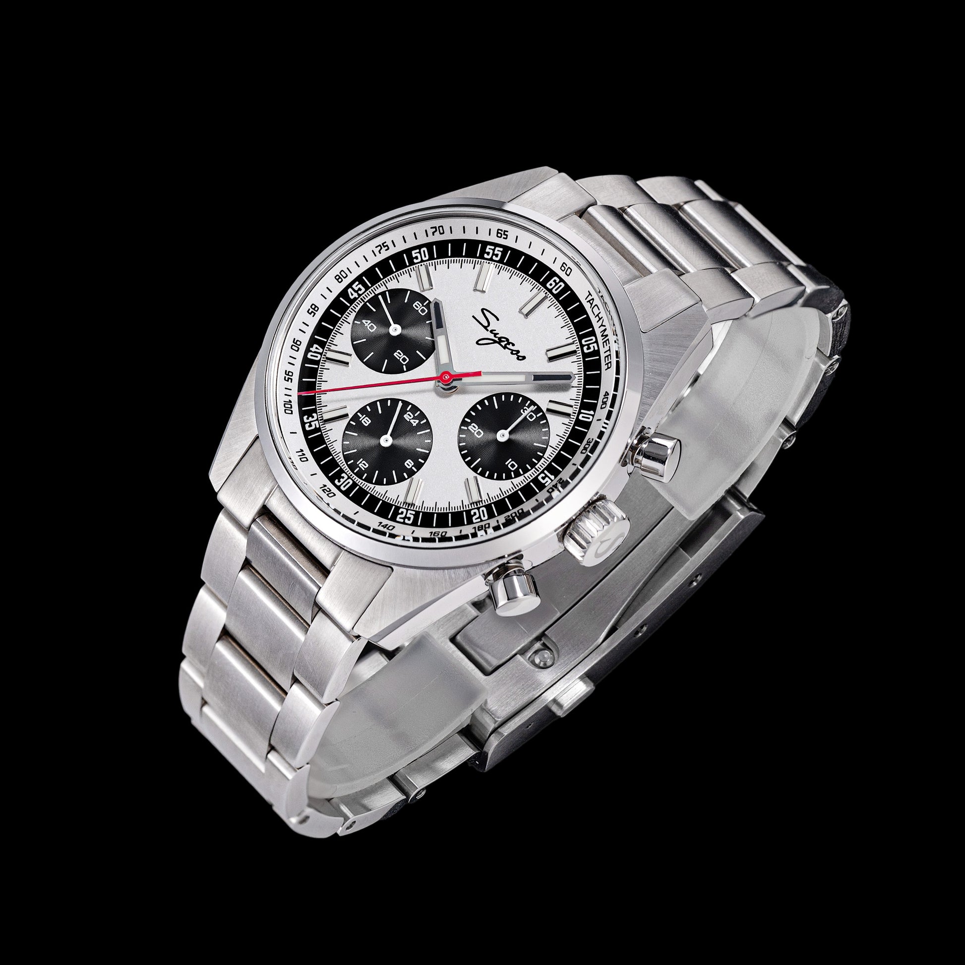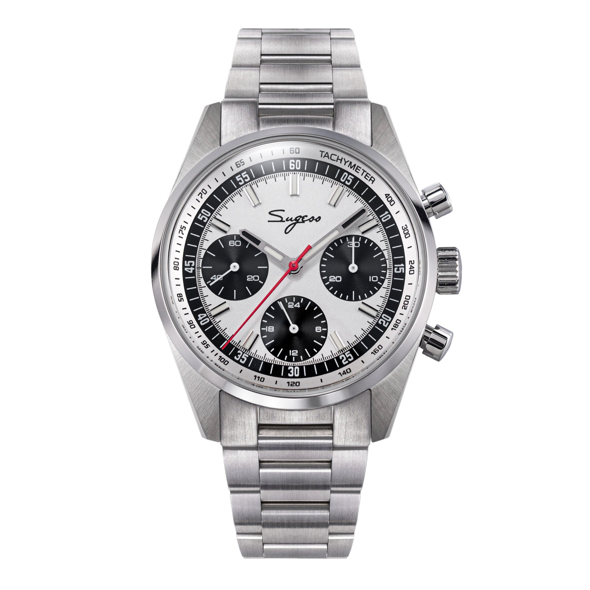Sugess S465 Chronograph Stainless Steel Panda Dial Silver Hand