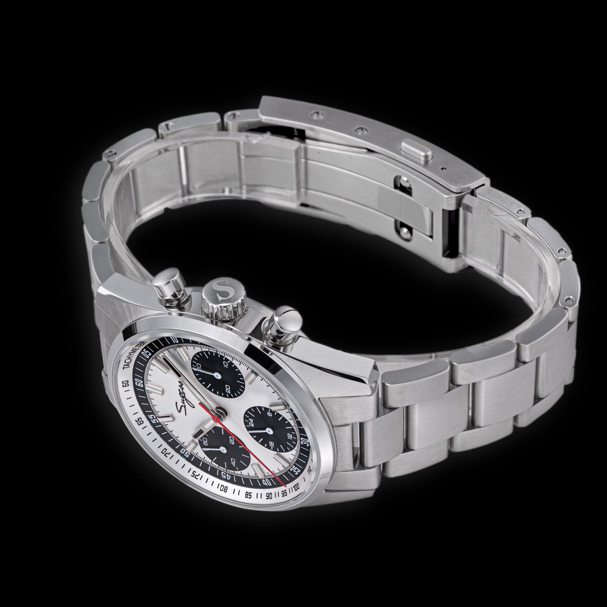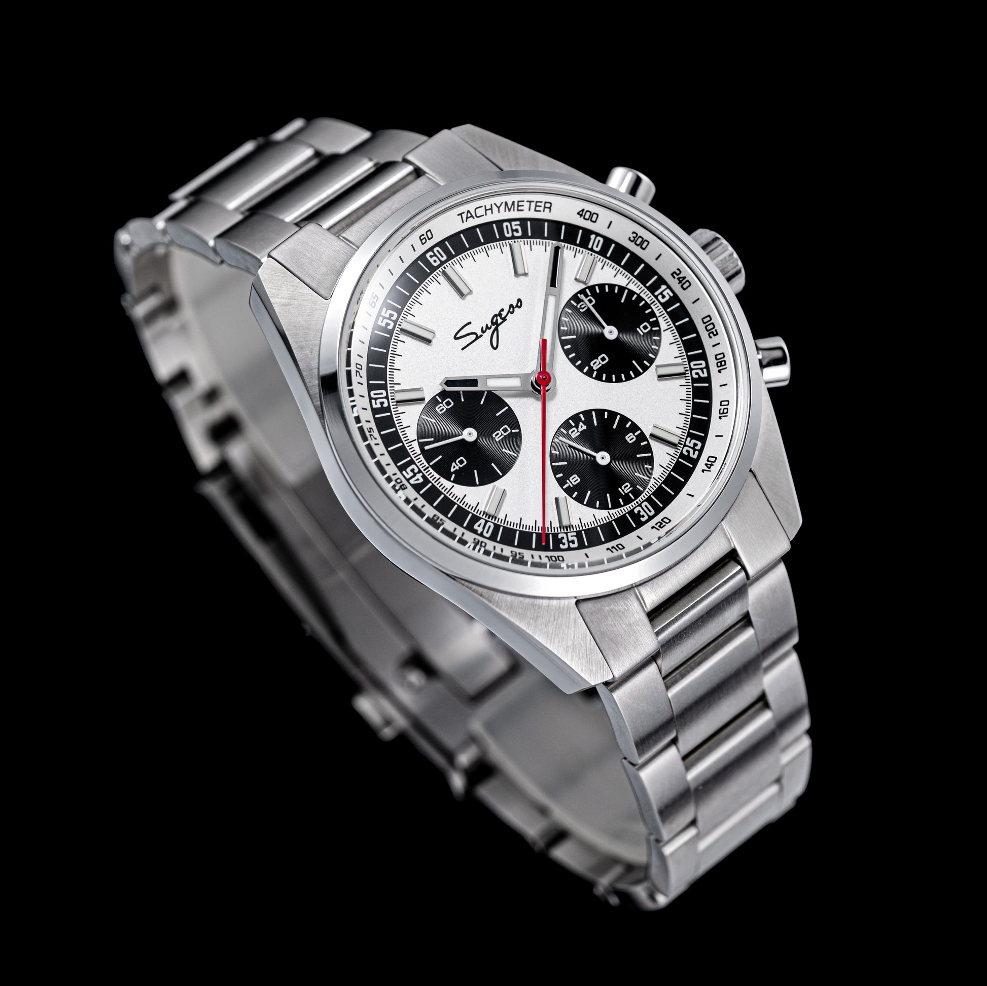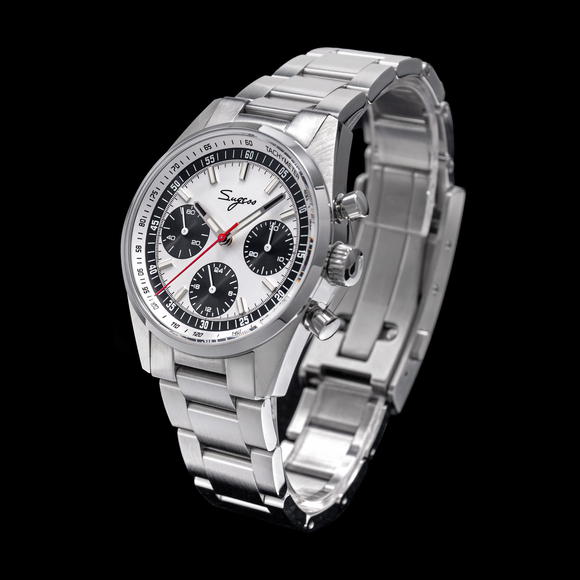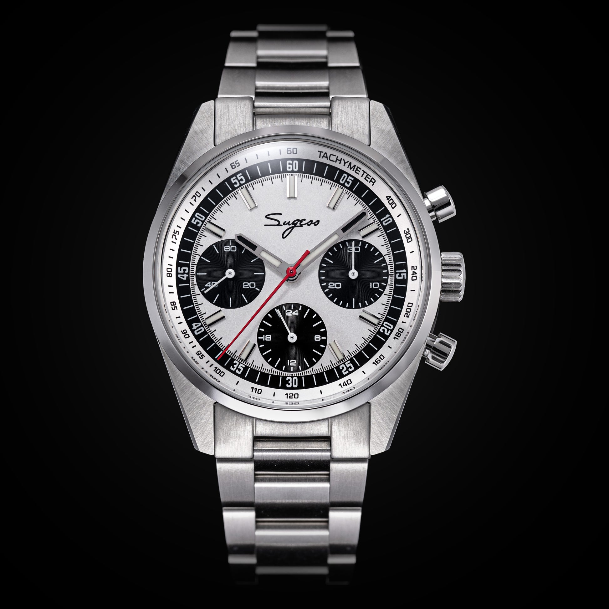 Sugess S465 Chronograph Stainless Steel Panda Dial Silver Hand