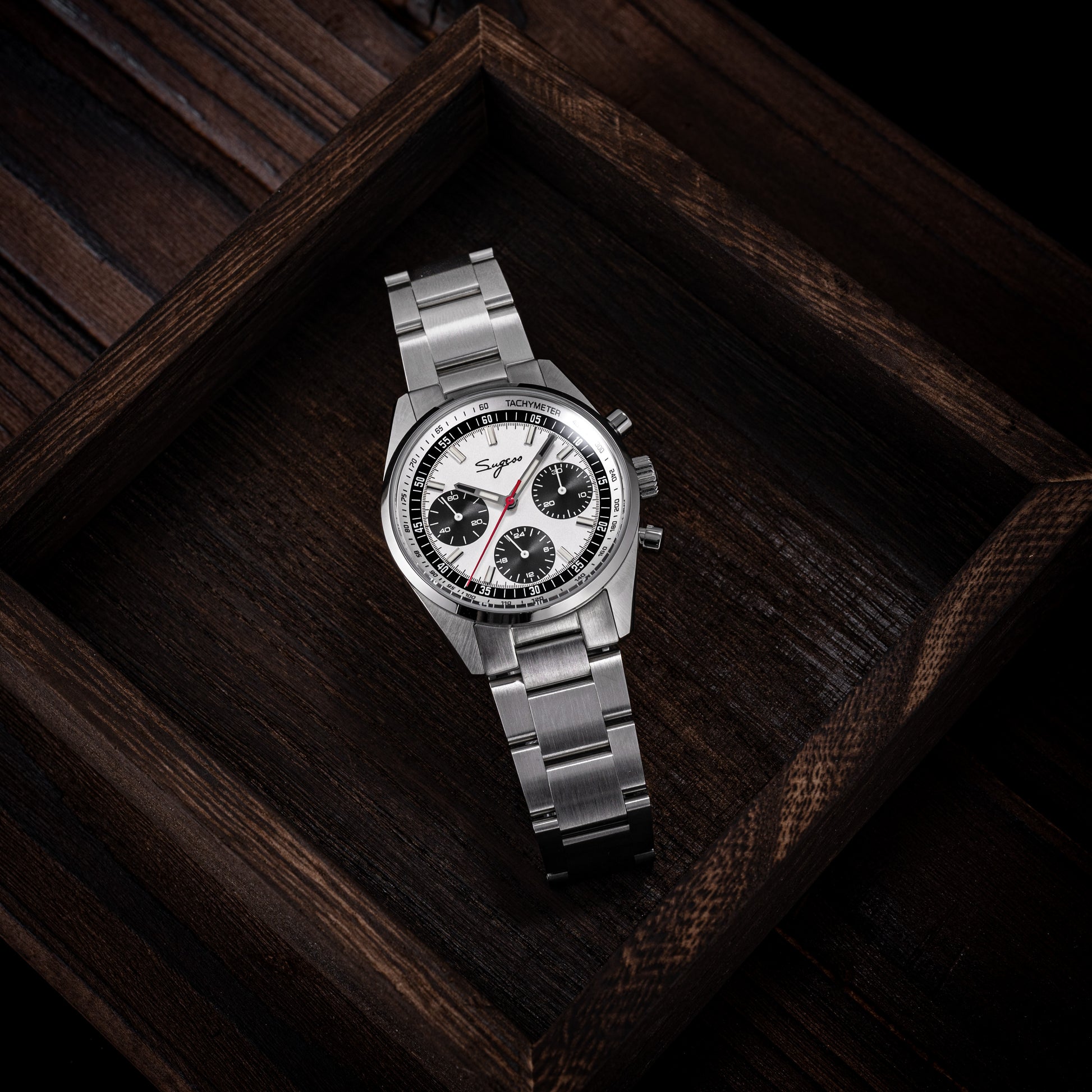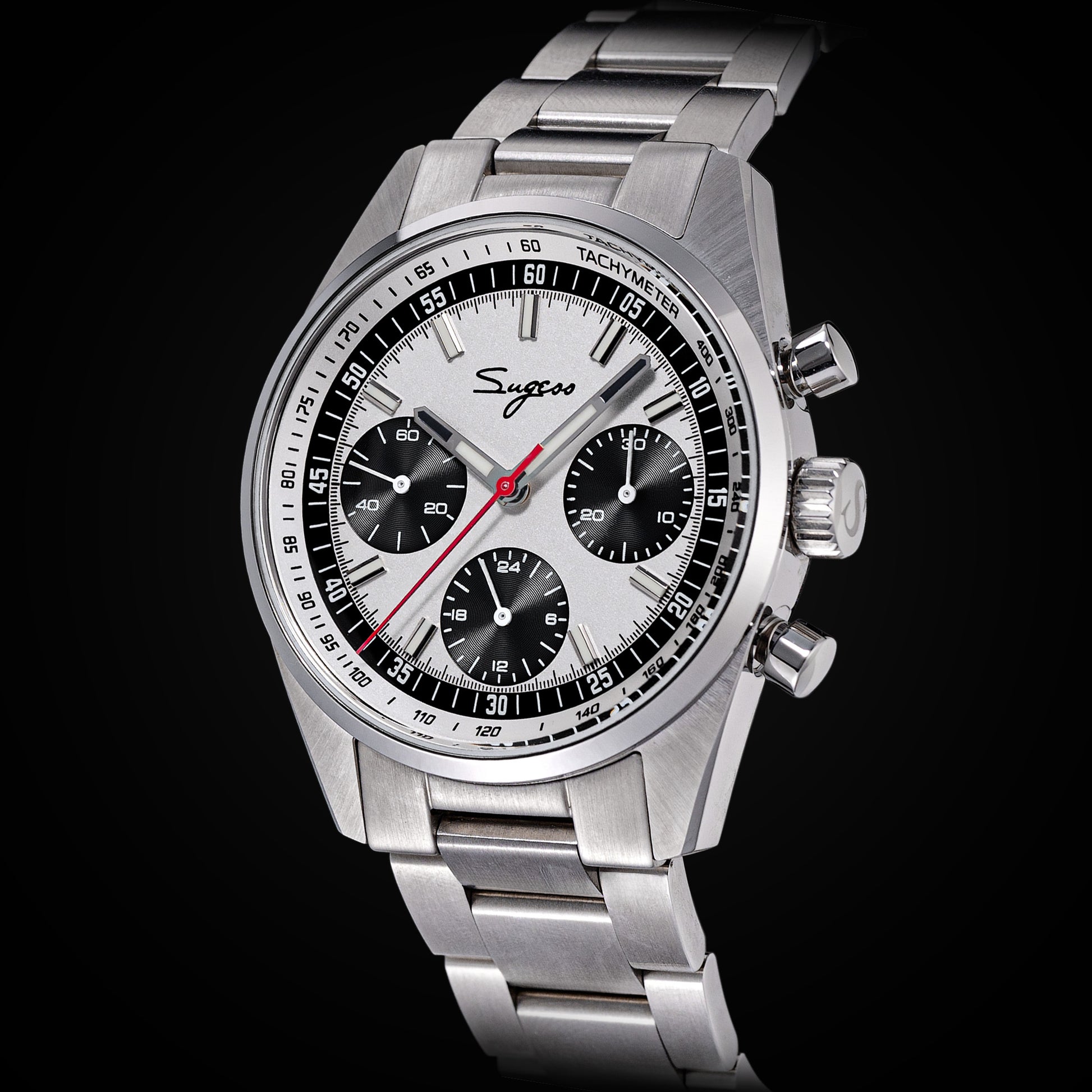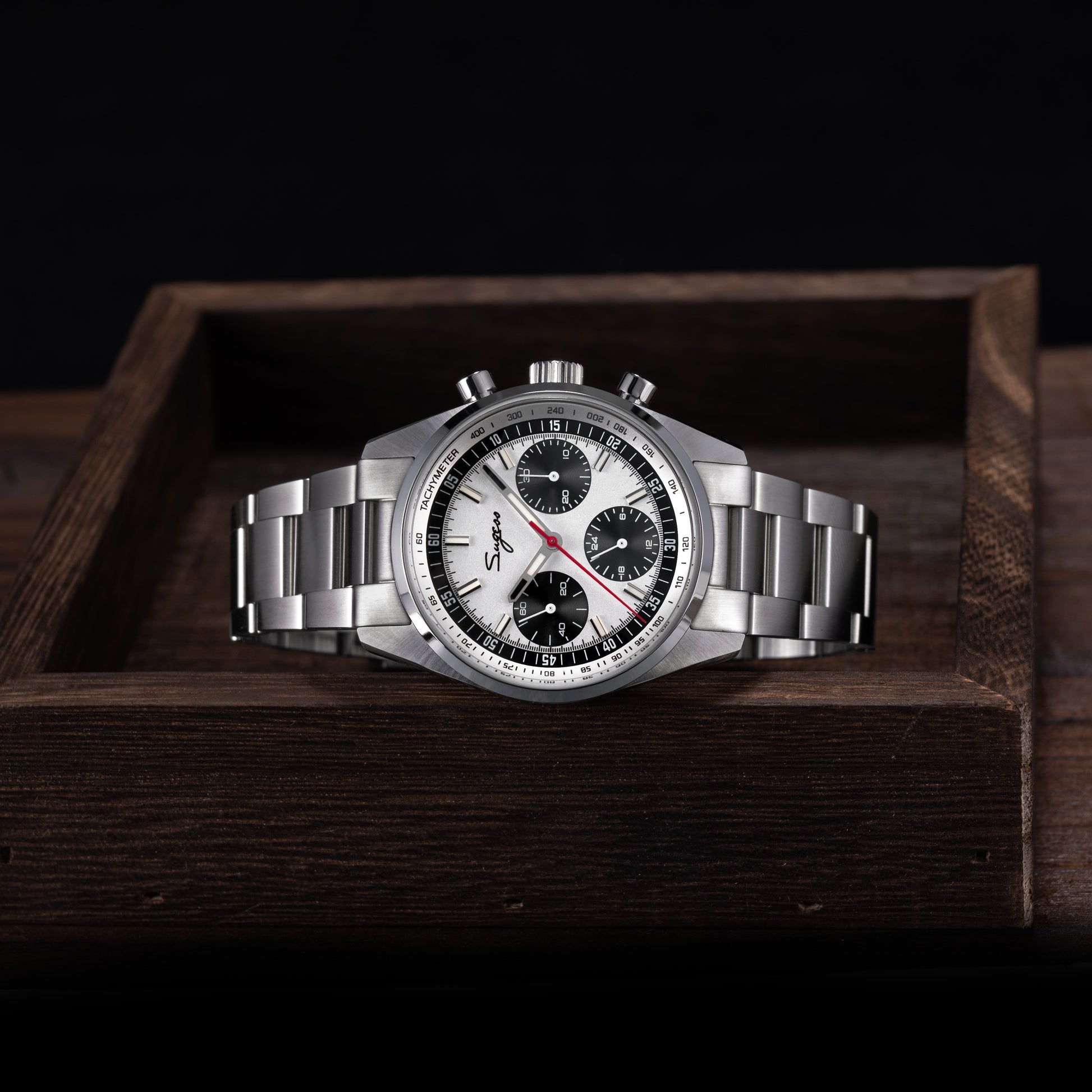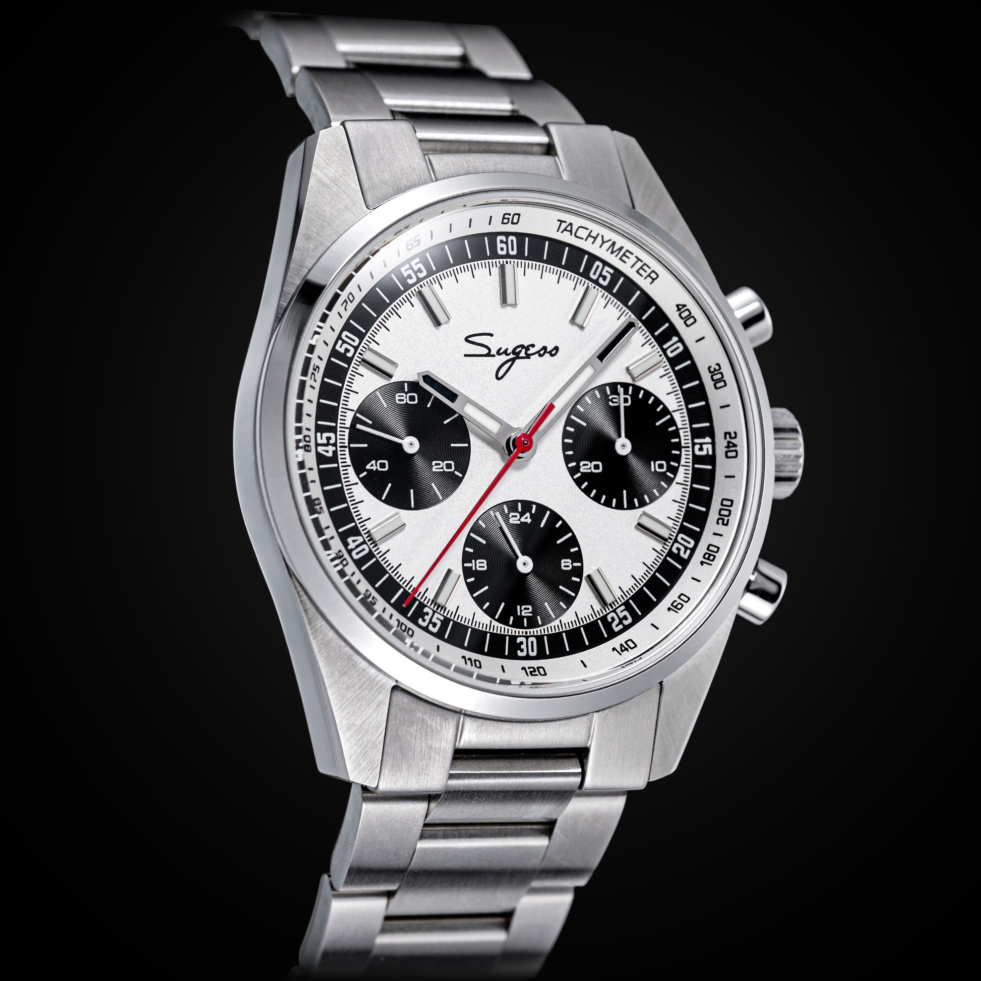 Sugess S465 Chronograph Stainless Steel Panda Dial Silver Hand