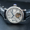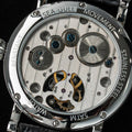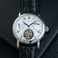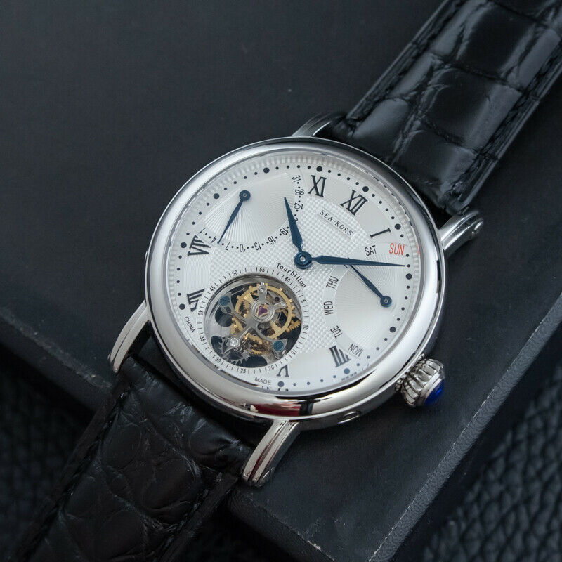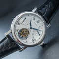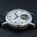 特点:陀飞轮,逆跳日期显示,麦穗表盘,蓝钢指针和螺丝,重量精密摆轮,展示表壳后盖