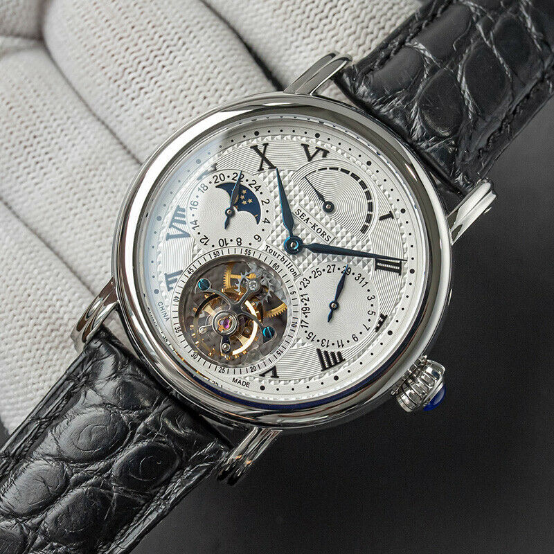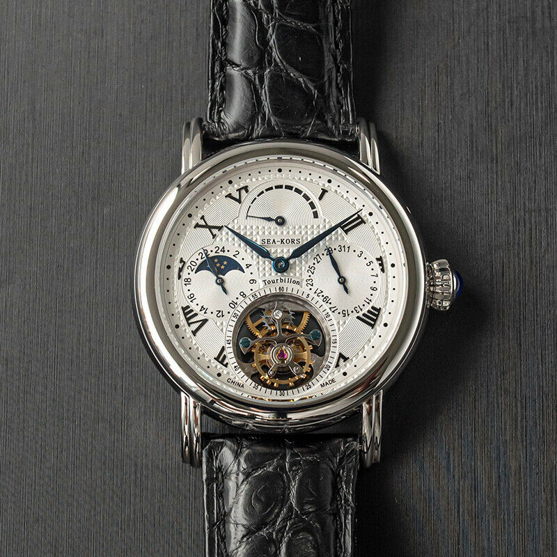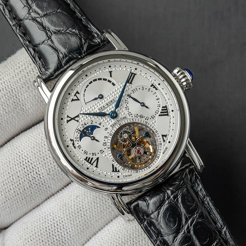 特点:陀飞轮,麦穗表盘,蓝钢指针和螺丝,重量精密摆轮,展示表壳后盖
