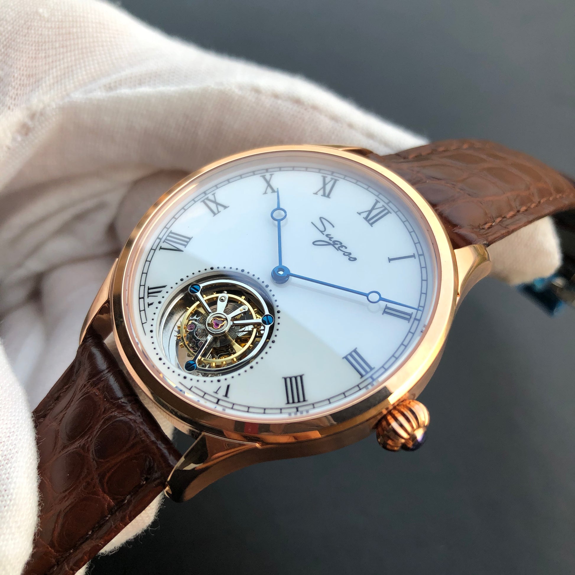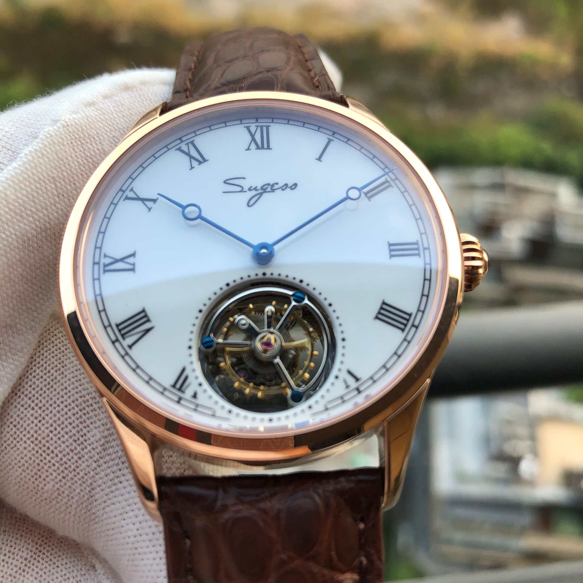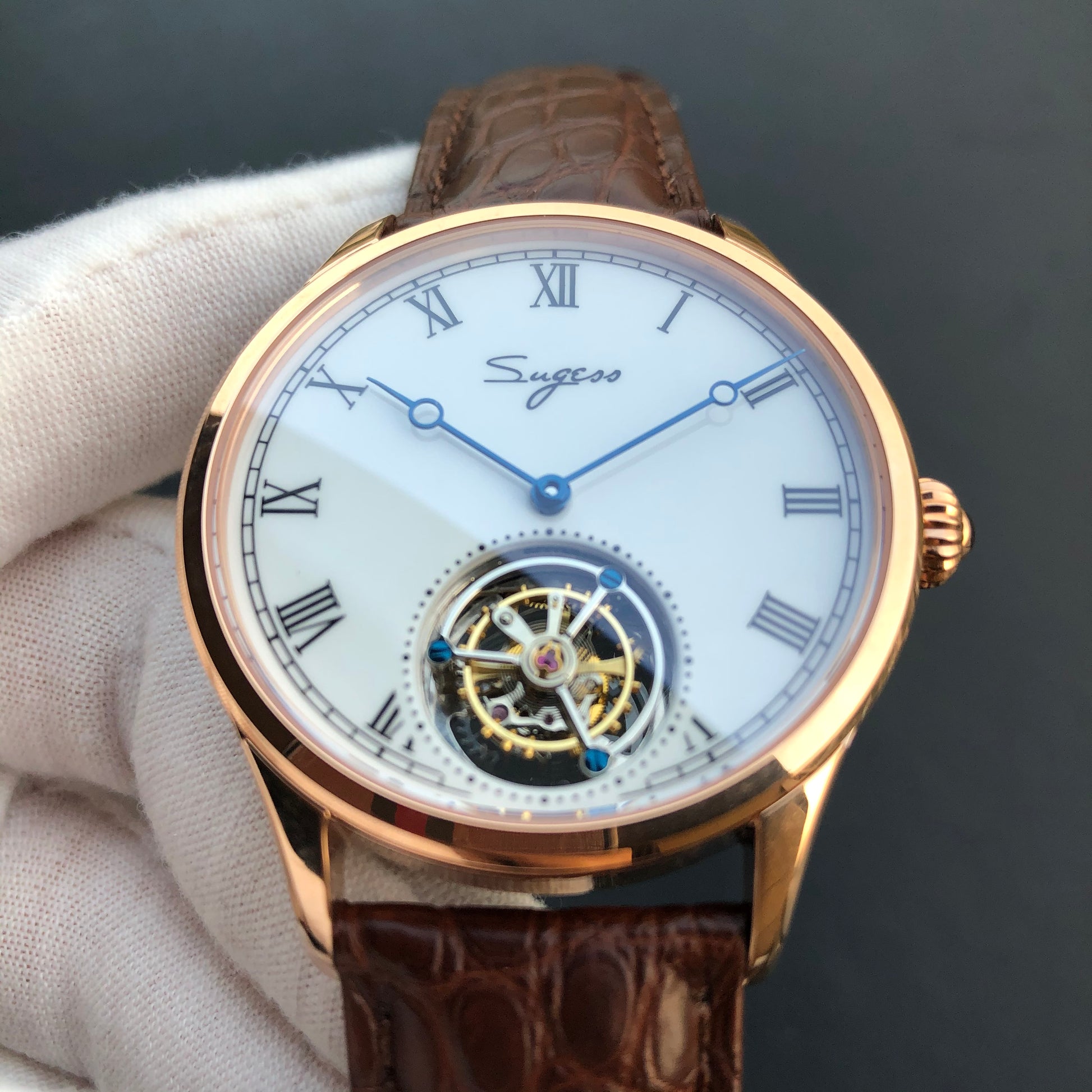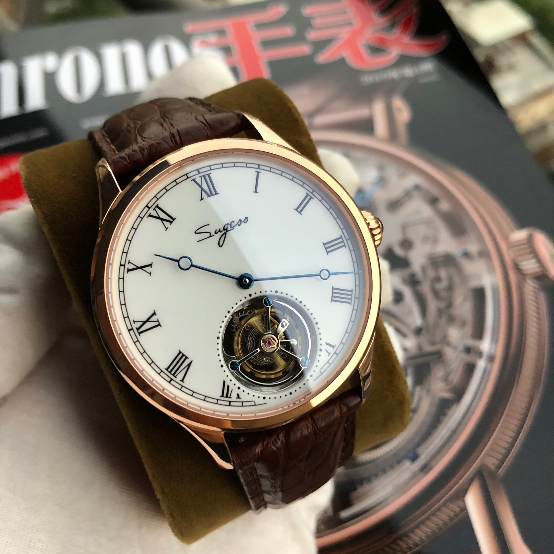 特点:陀飞轮,珐琅表盘(高温漆,100年不变黄),蓝钢指针和螺丝,重量精密摆轮,展示表壳后盖