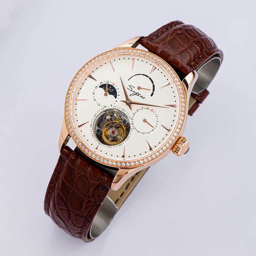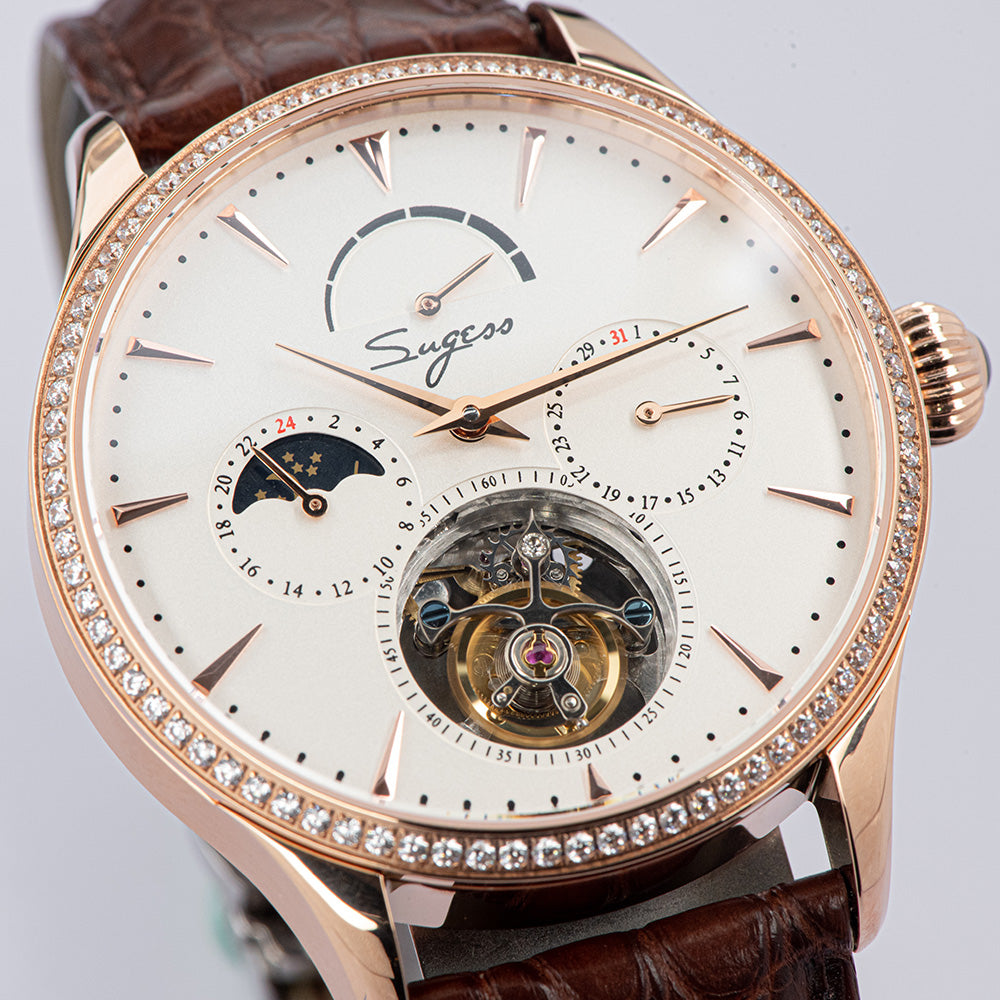 特点:陀飞轮,正品施华洛世奇水晶表圈,蓝钢螺丝,重量精密摆轮,展示表壳后盖