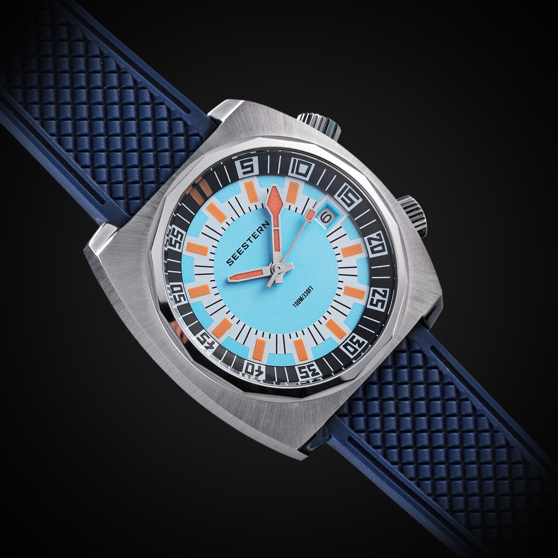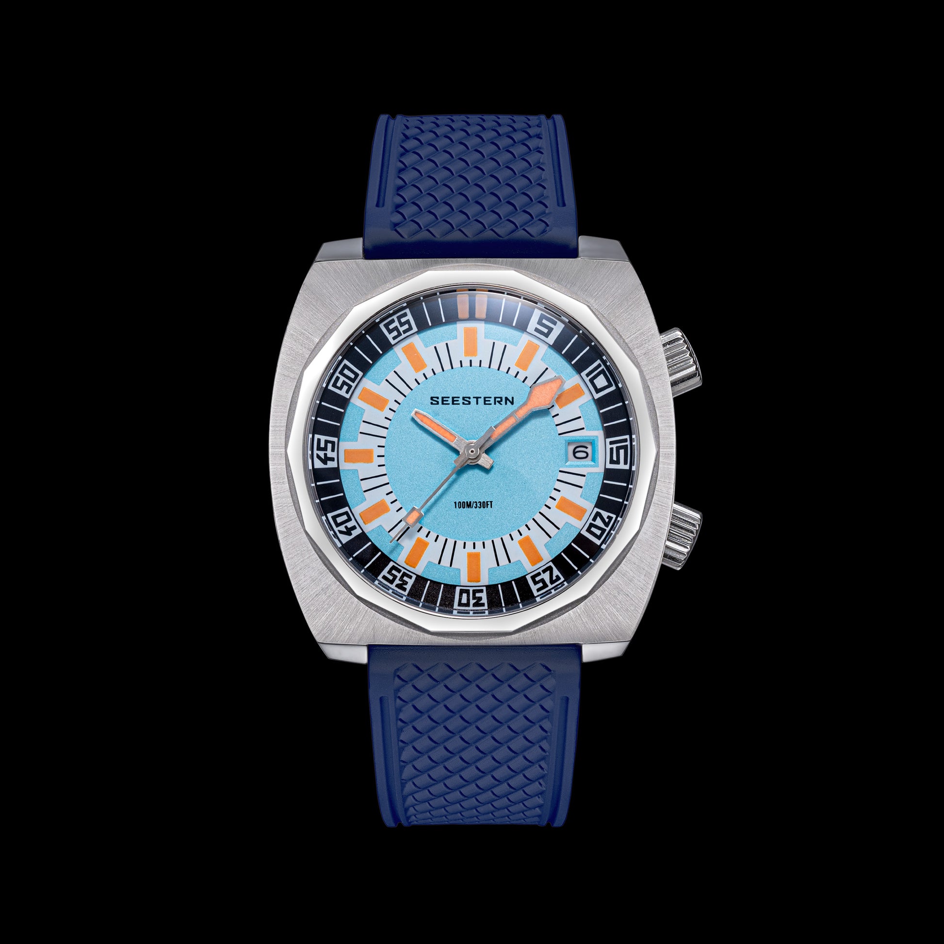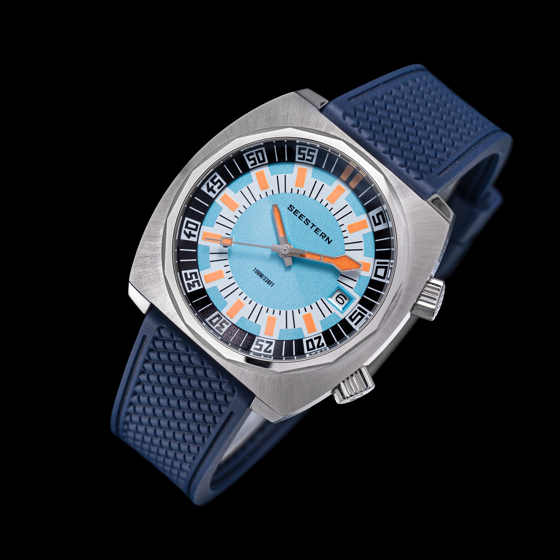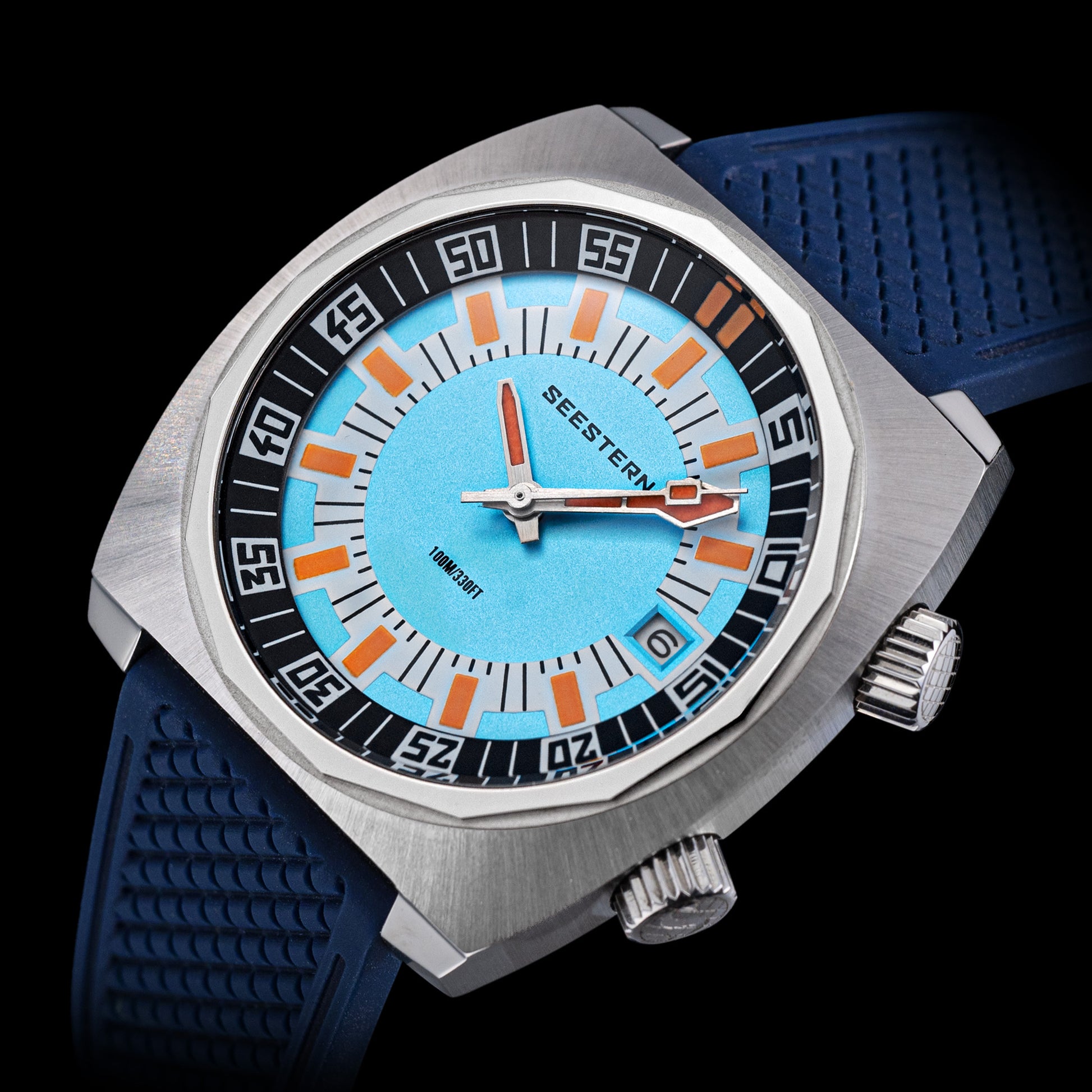 - Features : 100M Water Resistance, Sapphire Crystal, Internal Rotating Bezel, Release Rubber Band