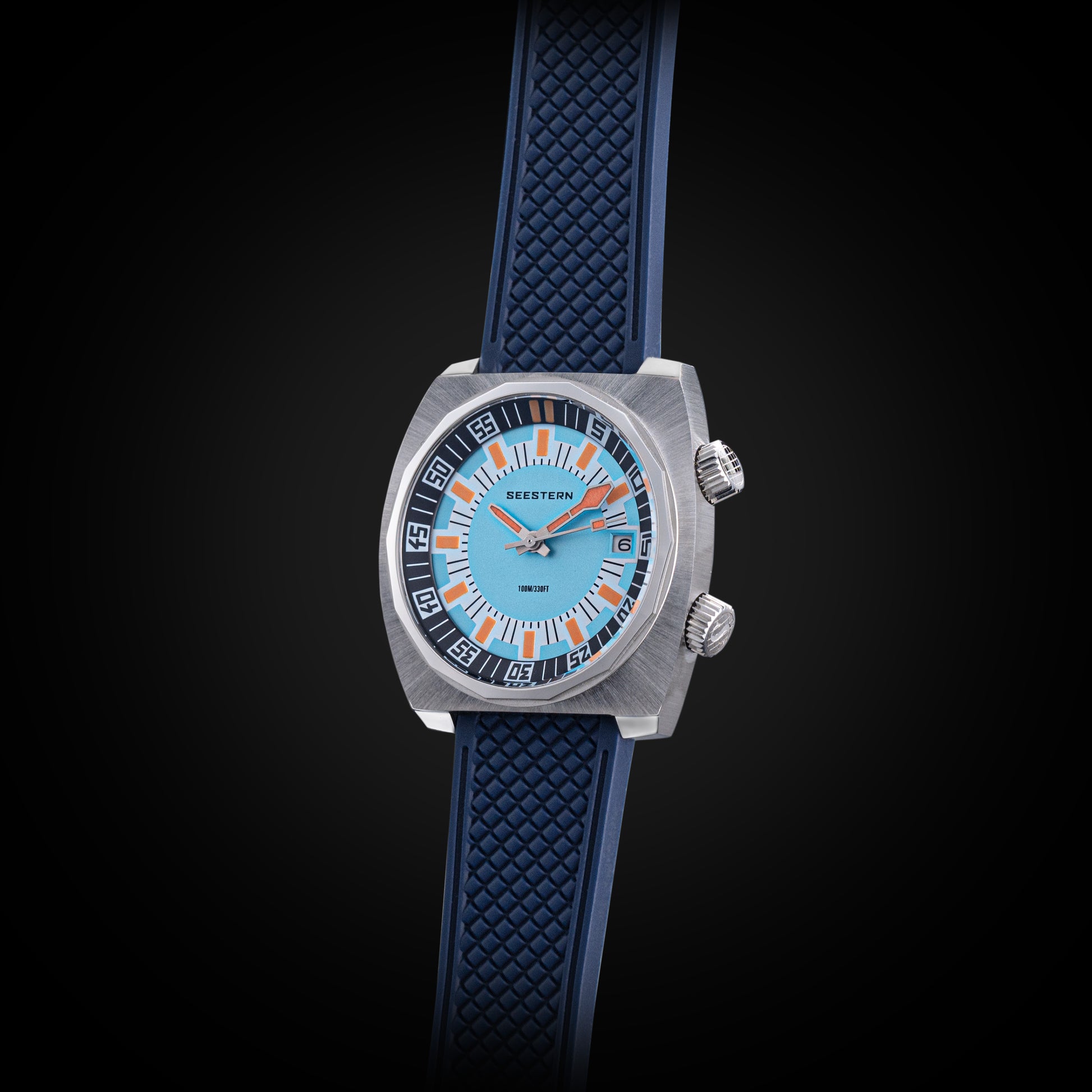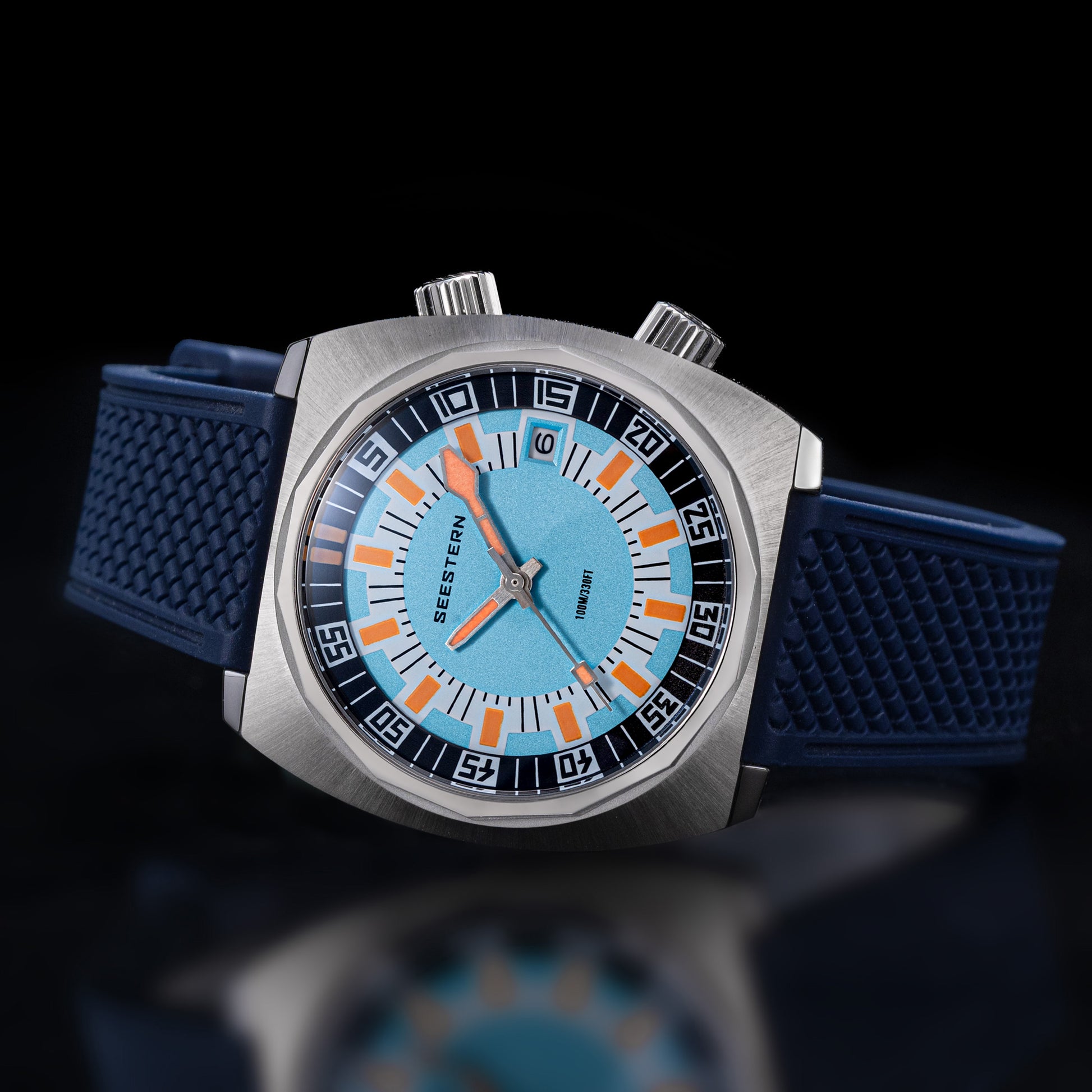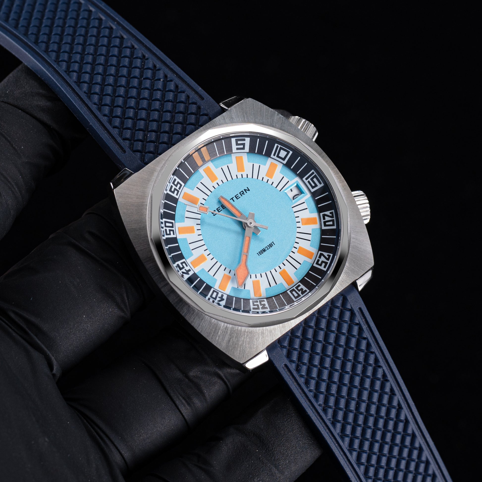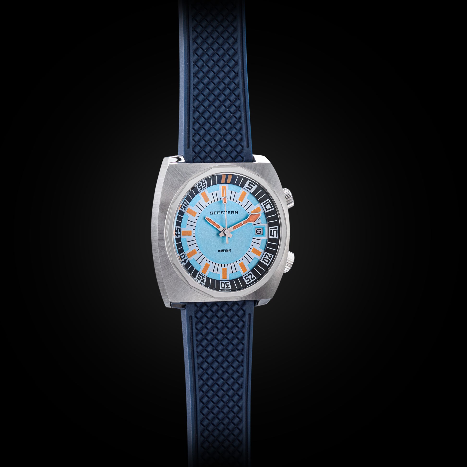 - Features : 100M Water Resistance, Sapphire Crystal, Internal Rotating Bezel, Release Rubber Band