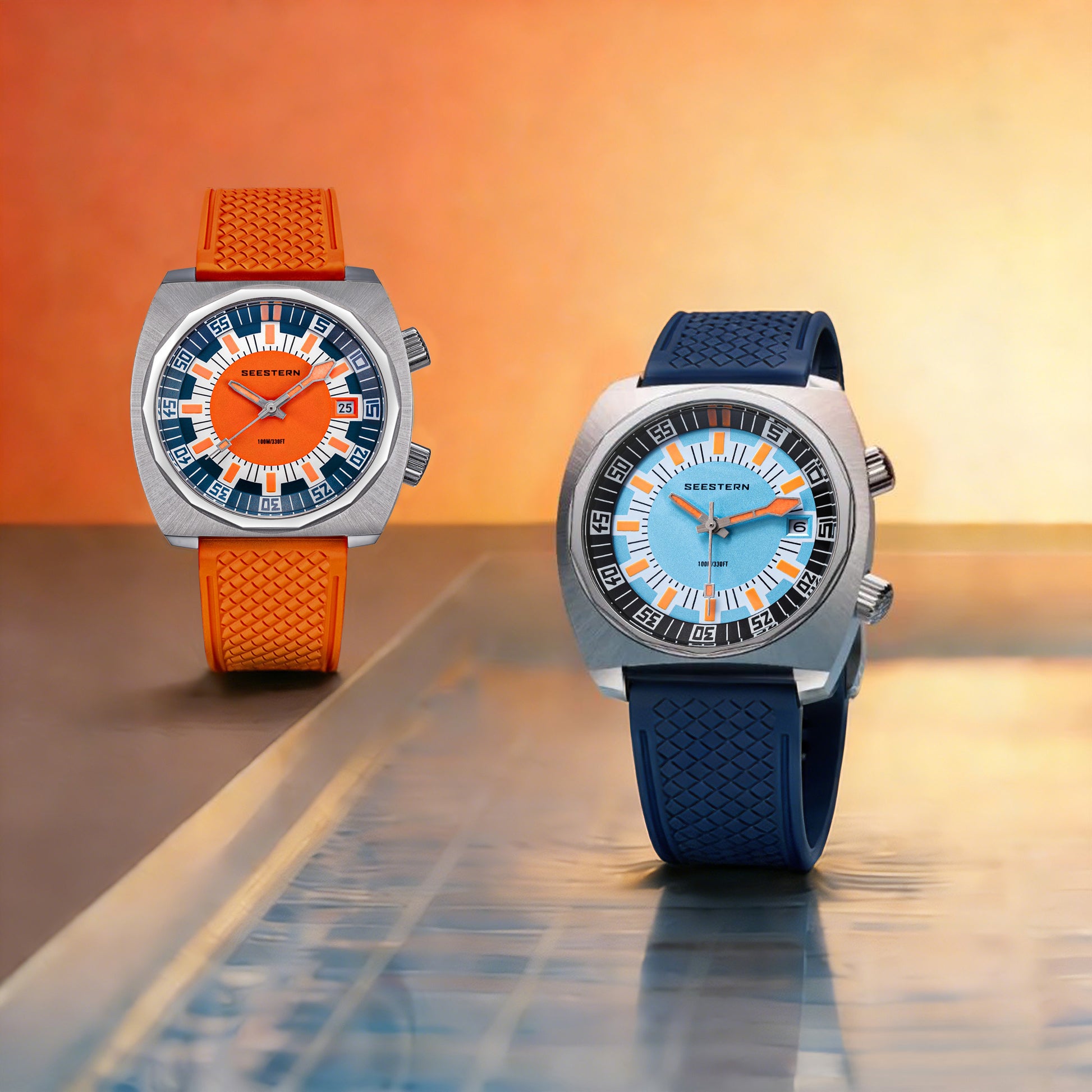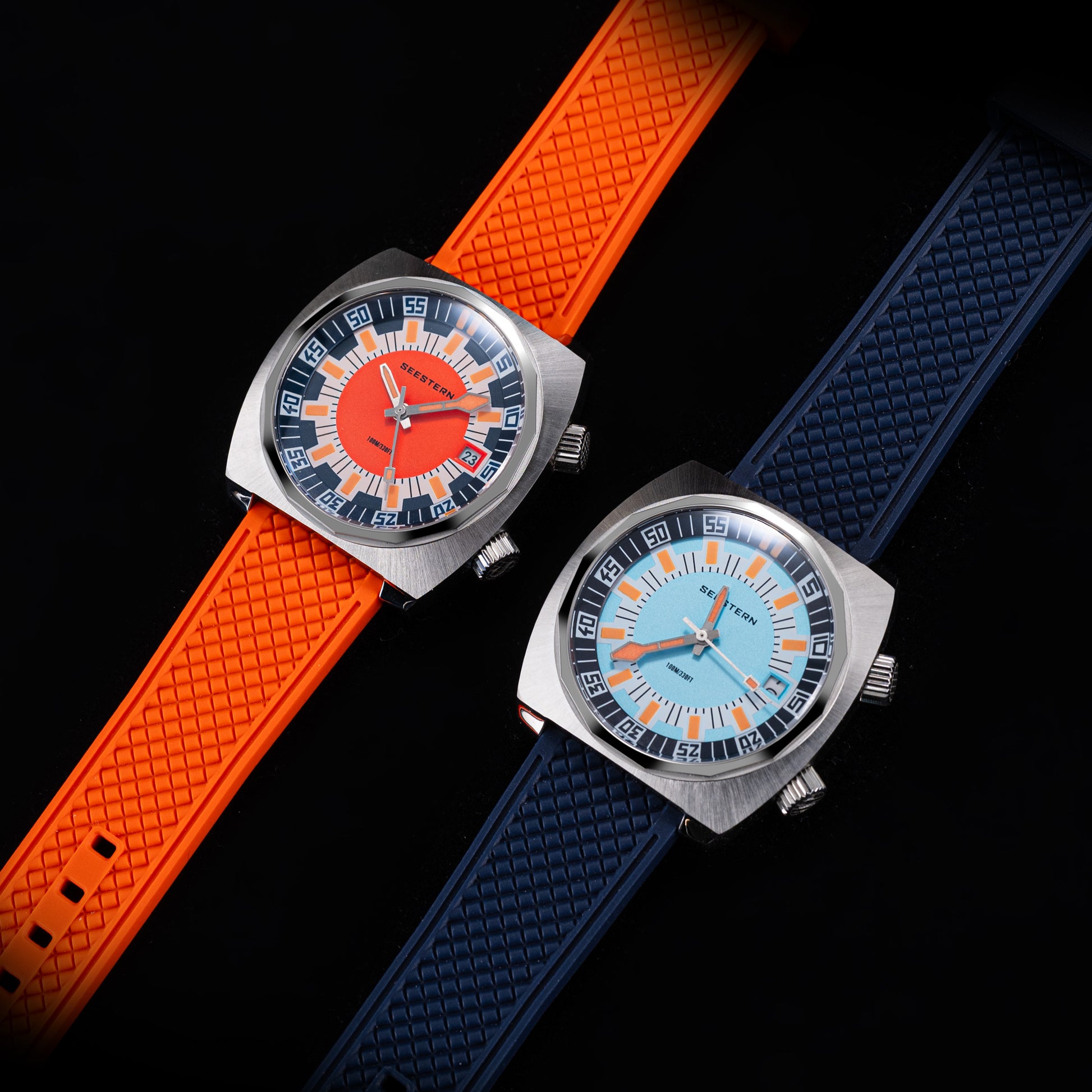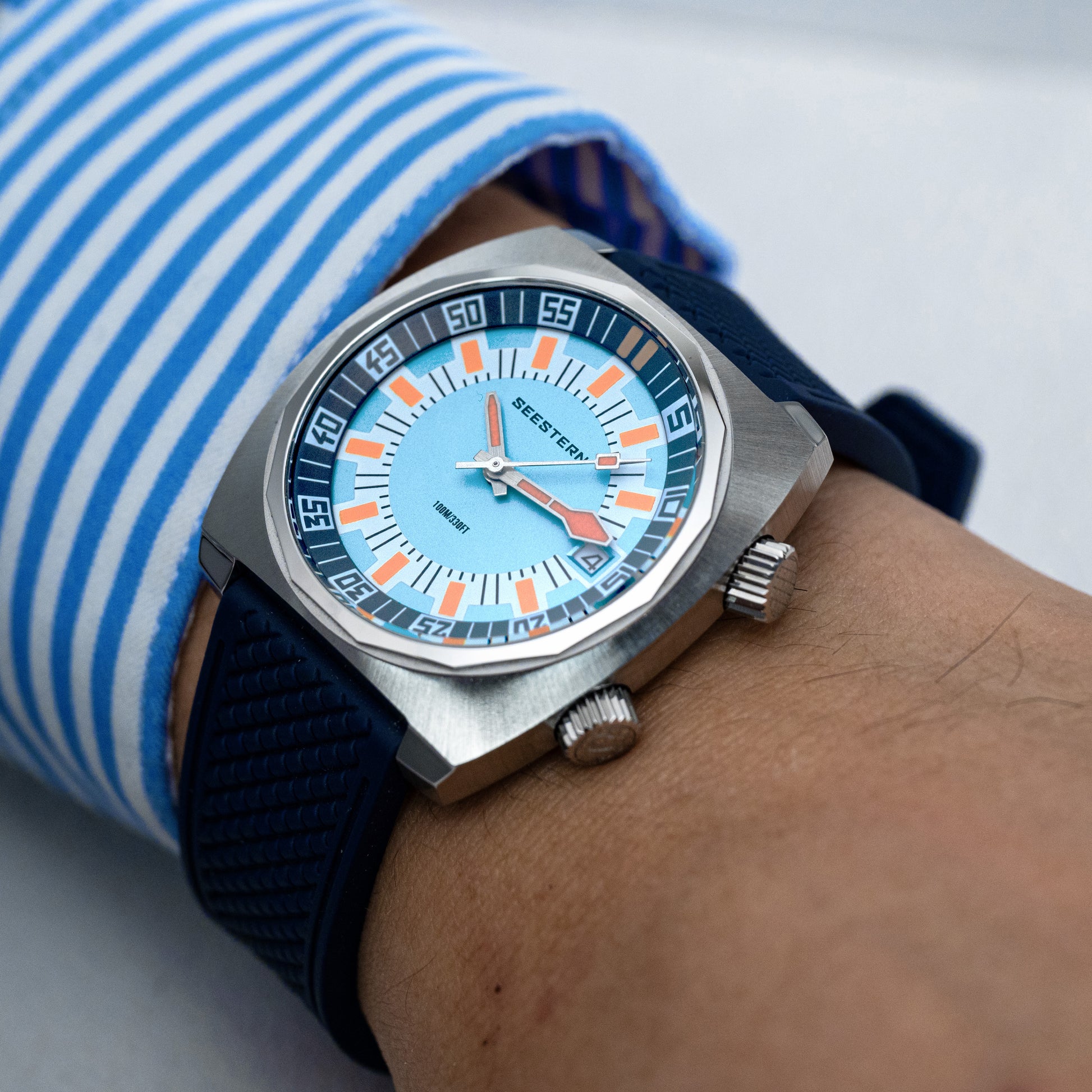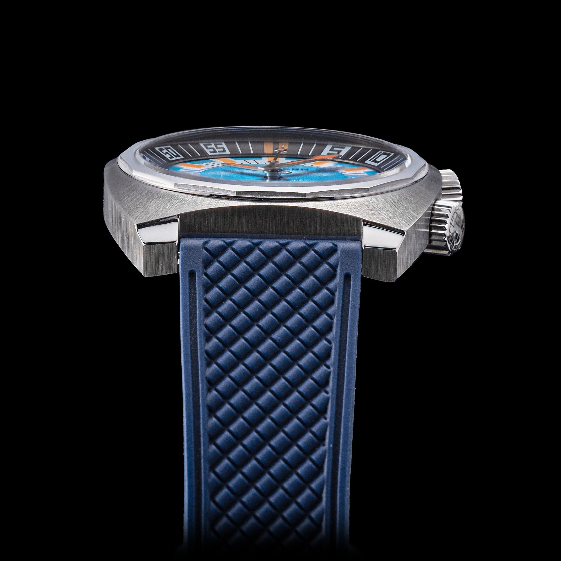 - Features : 100M Water Resistance, Sapphire Crystal, Internal Rotating Bezel, Release Rubber Band